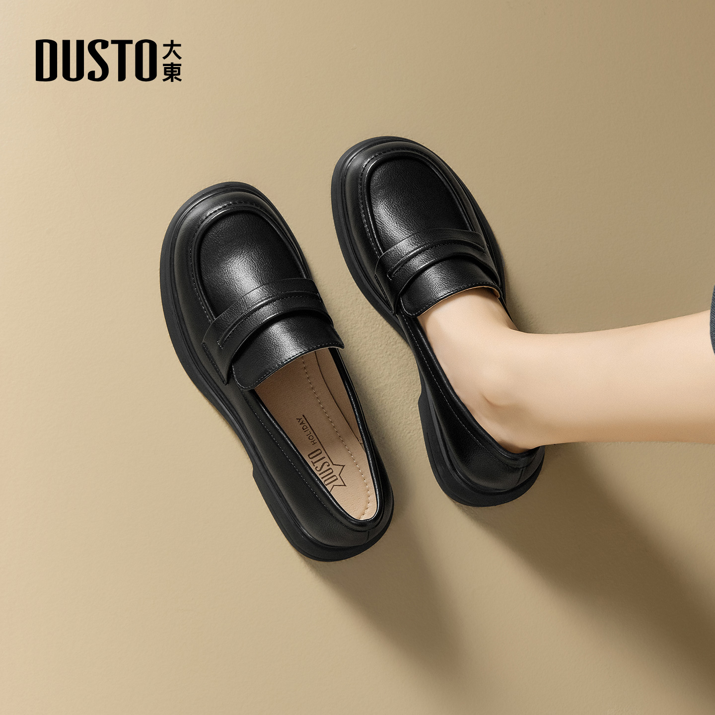 大东黑色乐福鞋女2025新款秋冬一脚蹬单鞋英伦风粗跟小皮鞋制服鞋