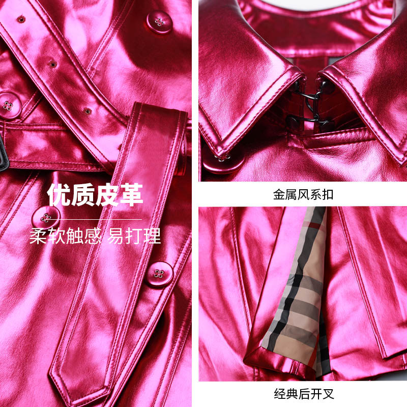 长款皮风衣女束腰修身英伦过膝红色双排扣皮衣女秋季时髦女士外套
