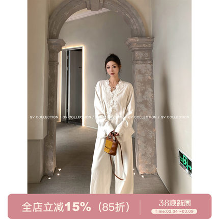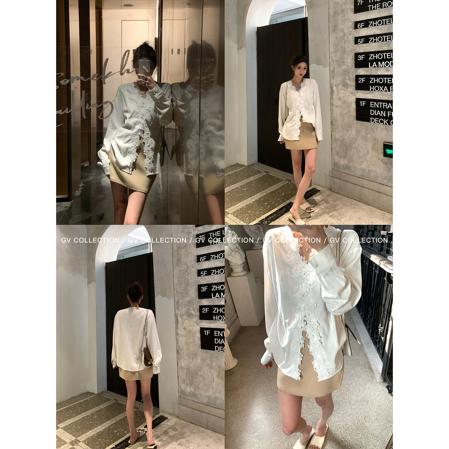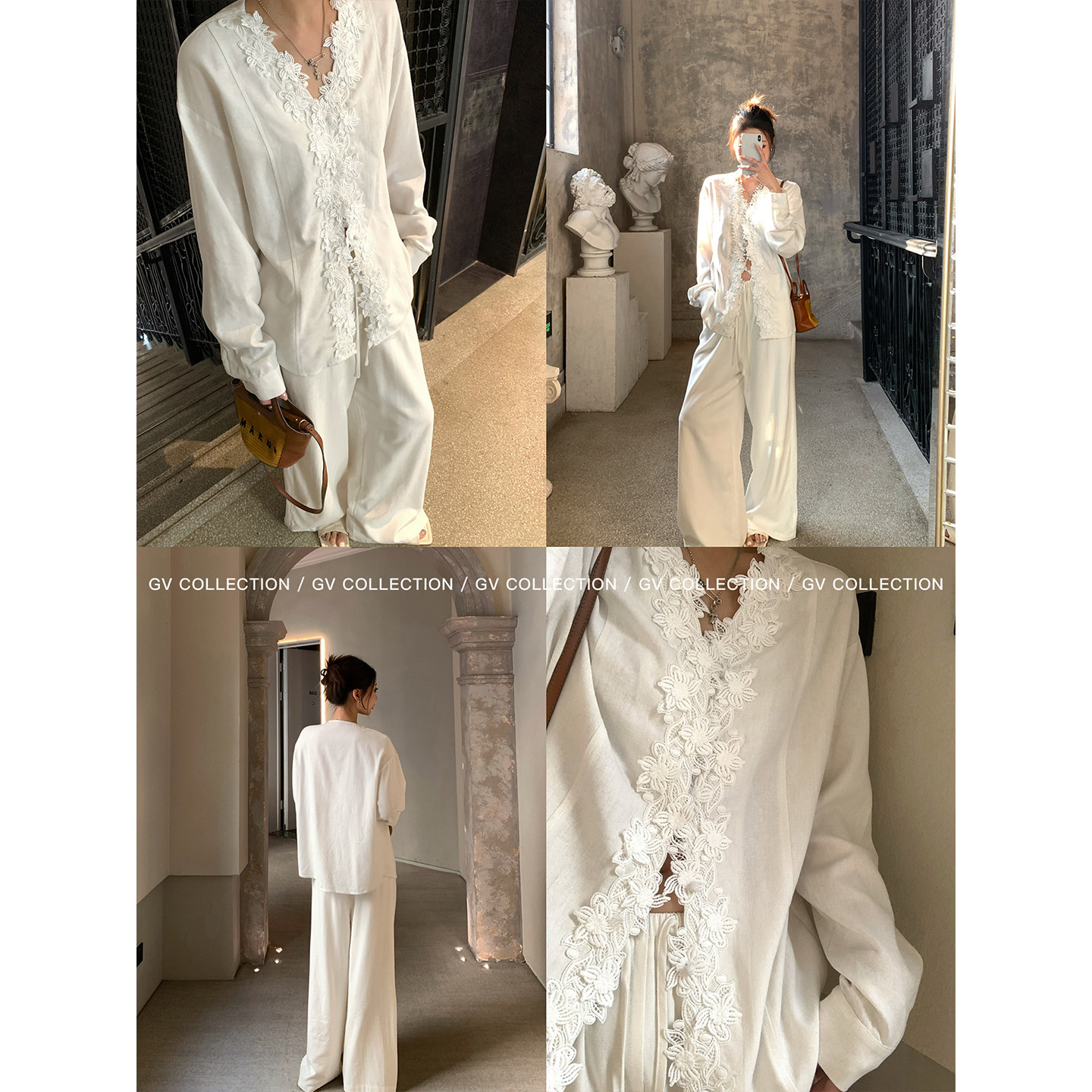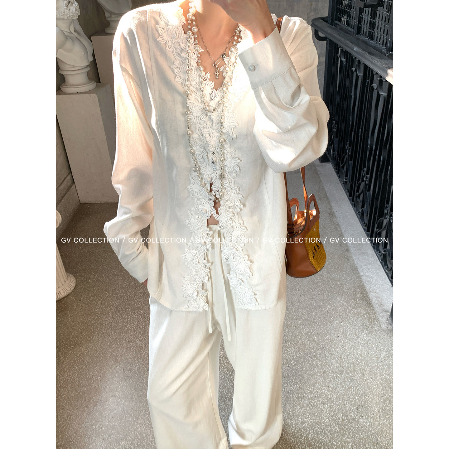 GV大白哥 塞纳画廊 亚麻立体刺绣新中式花朵上衣衬衫春夏新款百搭