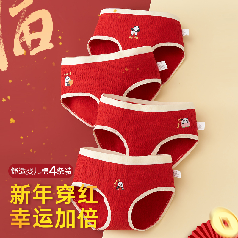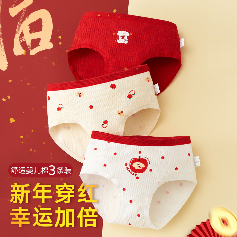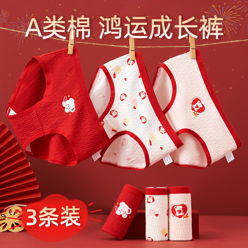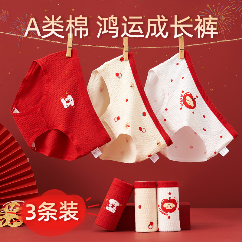 女童内裤纯棉少女三角裤发育期女孩大红内裤蛇年本命年中大童a类