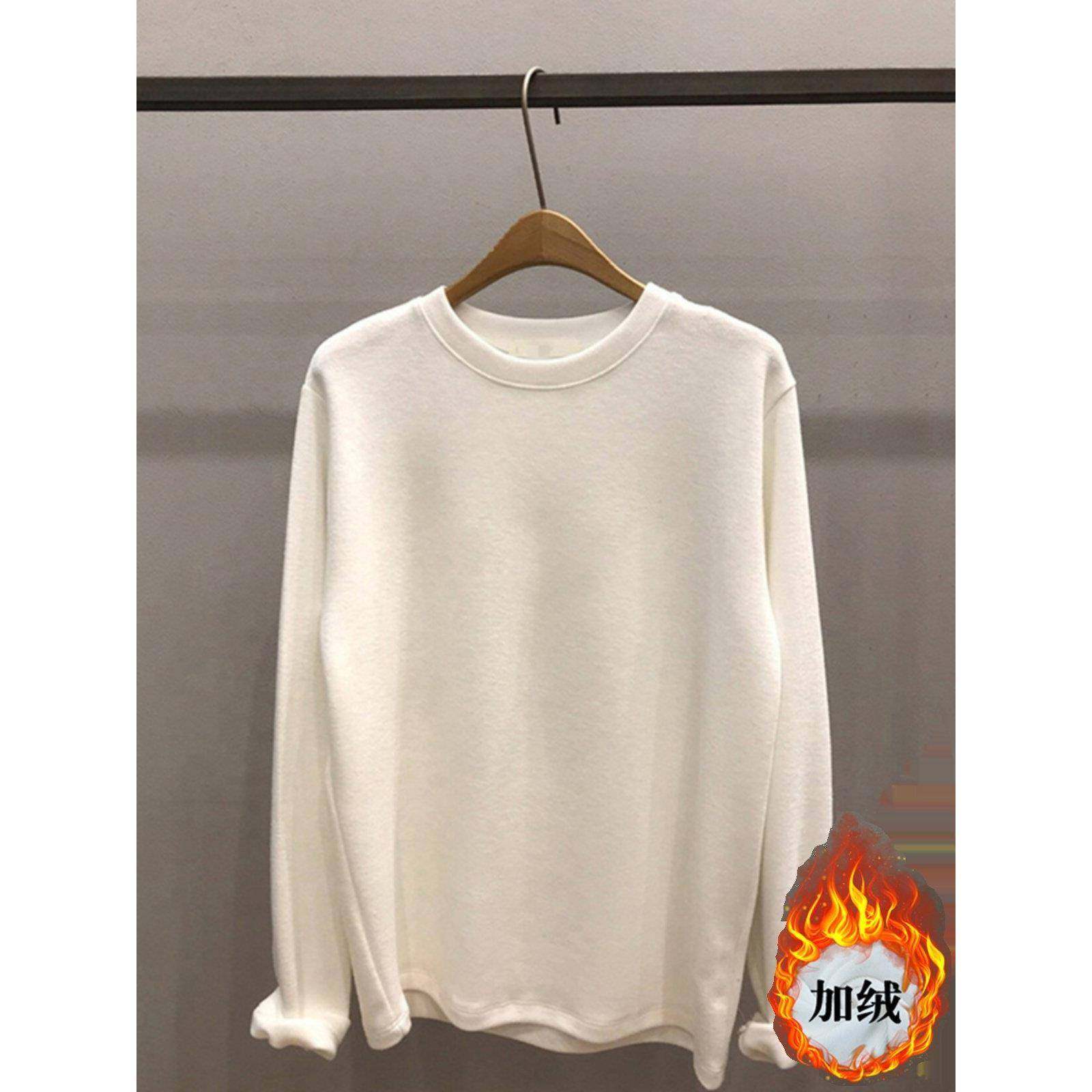 春秋白色丝绒女底衬衫宽松t恤长袖打底衫休闲经典简单款0115ud