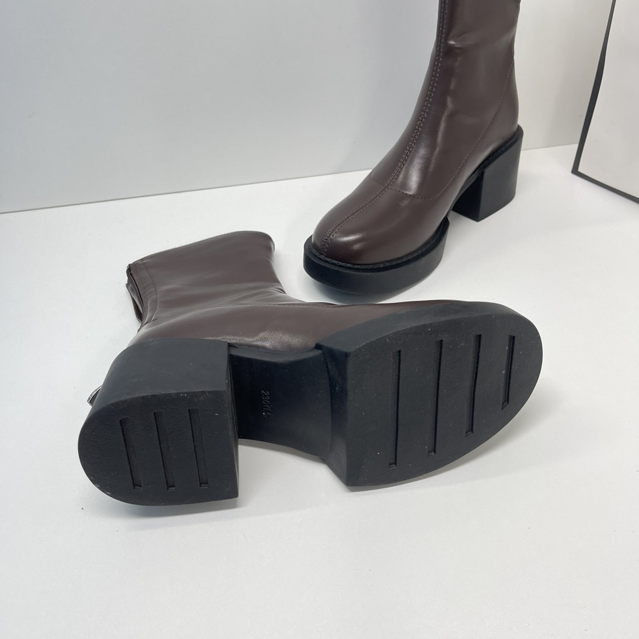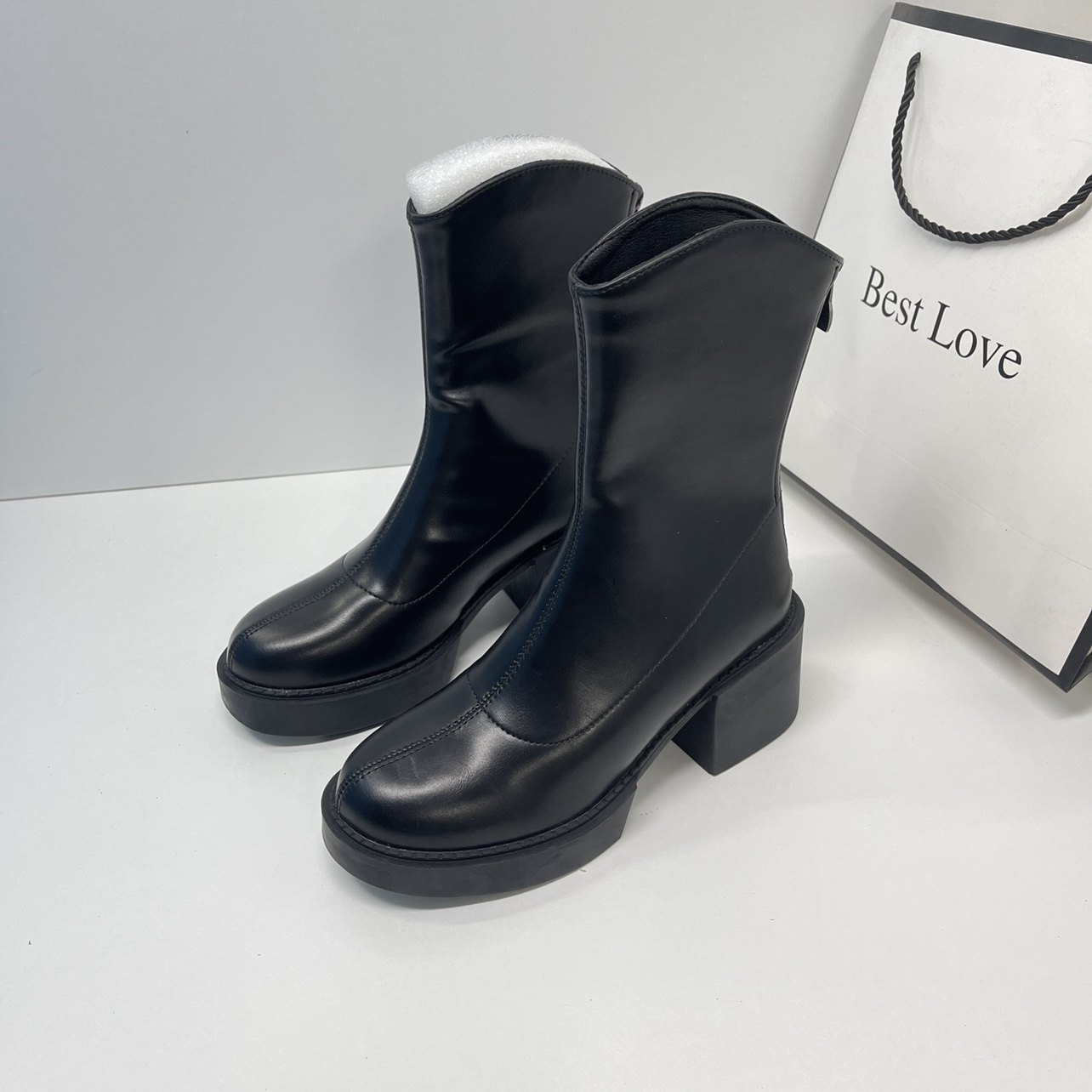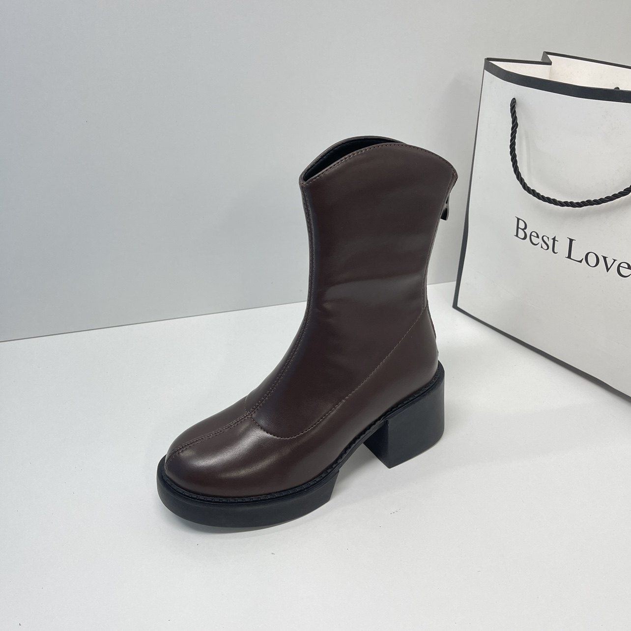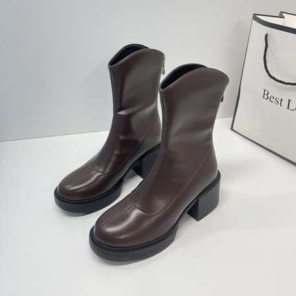 棕色厚底粗跟短靴女2026秋冬季V口百搭增高英伦风单靴复古瘦瘦靴