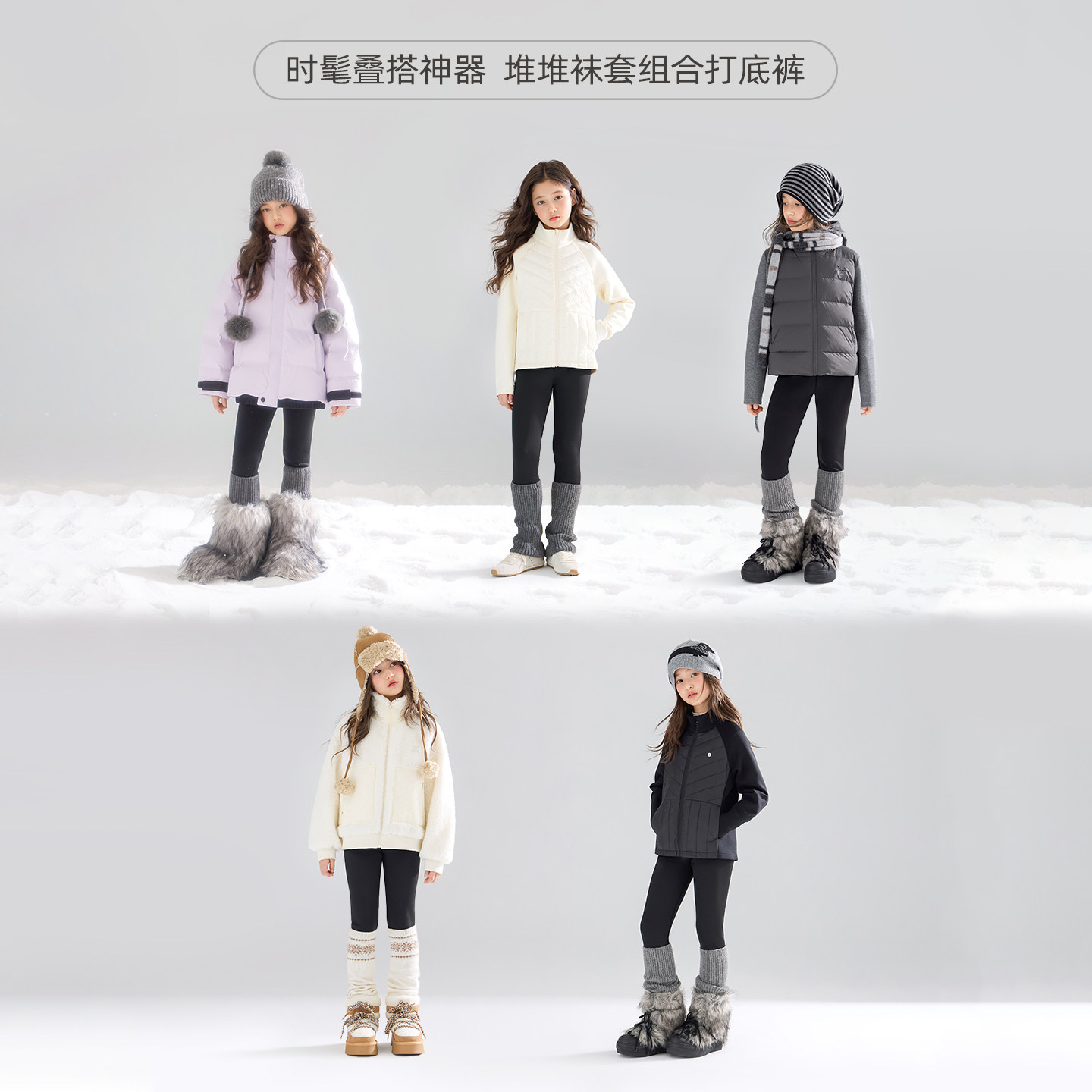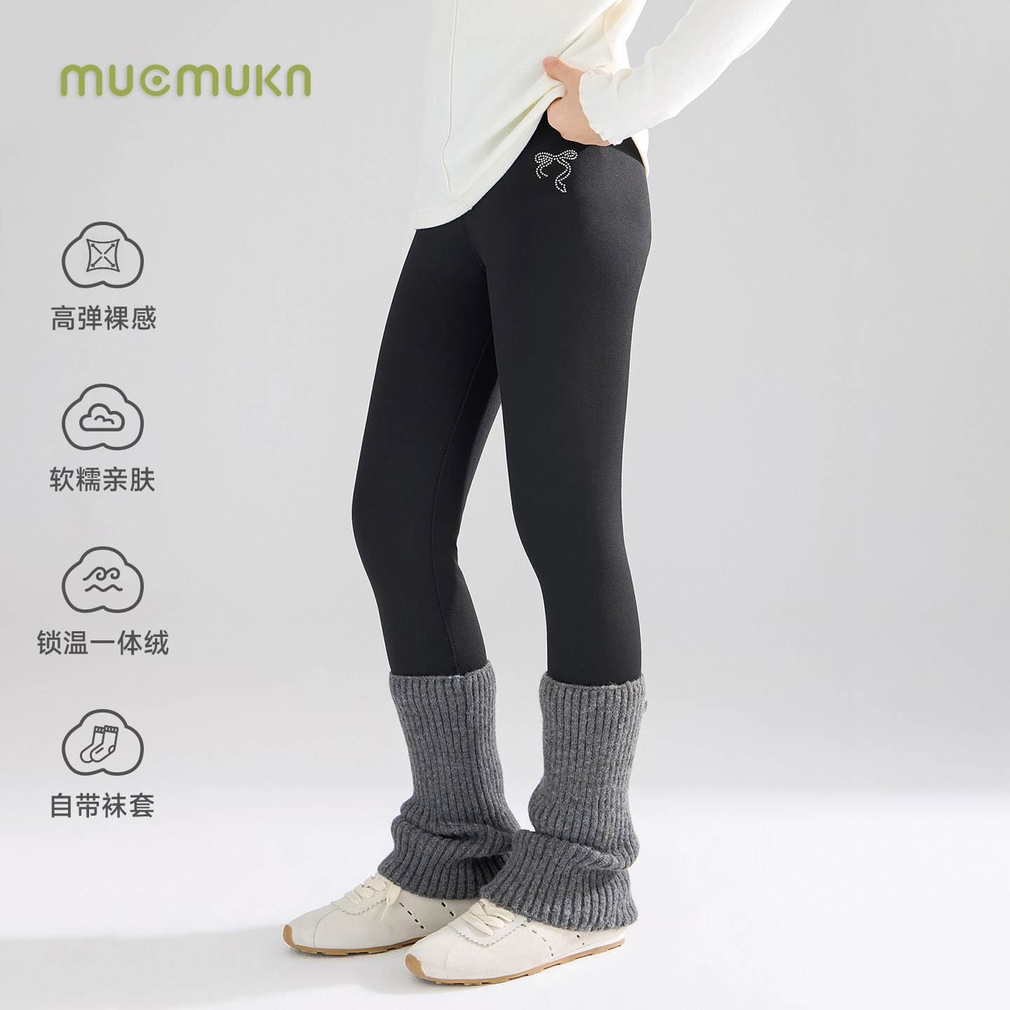 MUCMUKN【时髦两穿】 一体加绒打底裤堆堆袜套组合女童25冬新款