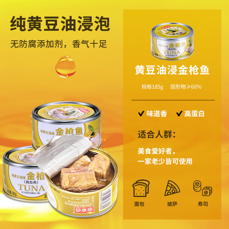 鱼家香金枪鱼黄豆油浸罐头185g即食拌饭寿司料理日式三明治沙拉
