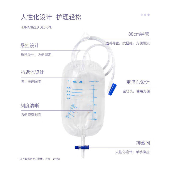薛湖引流袋500ml医用尿袋一次性防逆流老人胆汁接尿神器导尿管