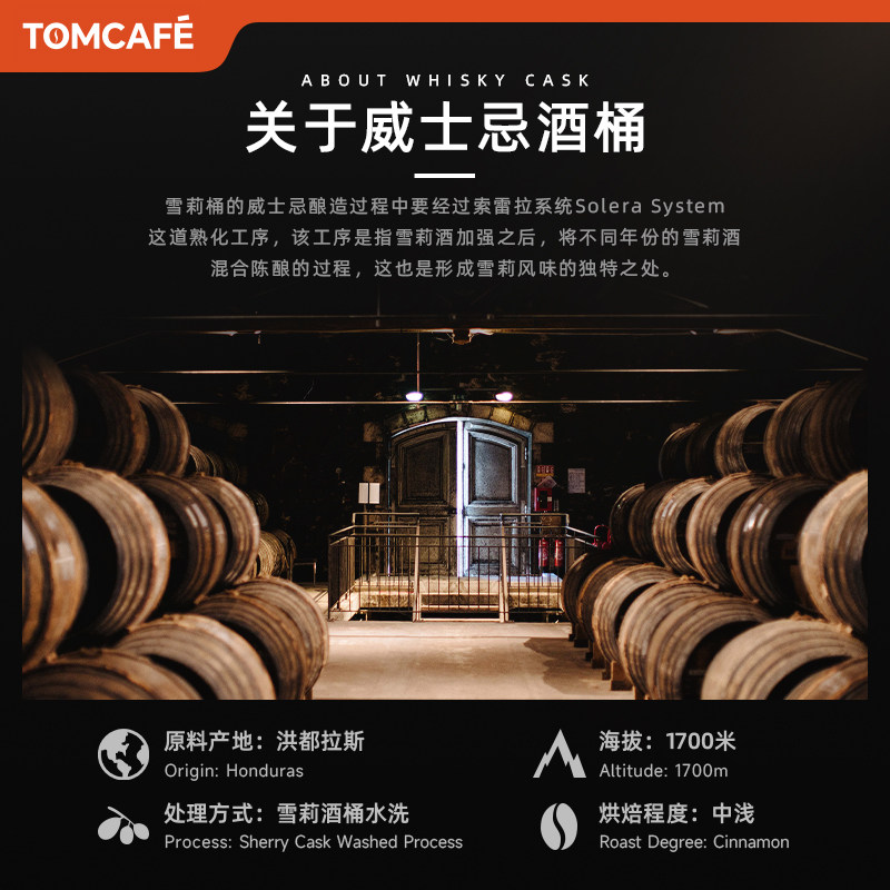 汤咖TOMCAFE威士忌酒桶雪莉酒桶水洗处理全直火烘焙咖啡豆咖啡汤