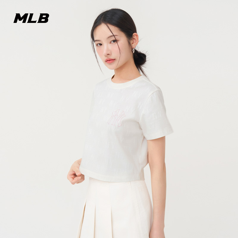 MLB官方 女款满印老花短款T恤舒适圆领正肩短袖25夏季新款TSM01
