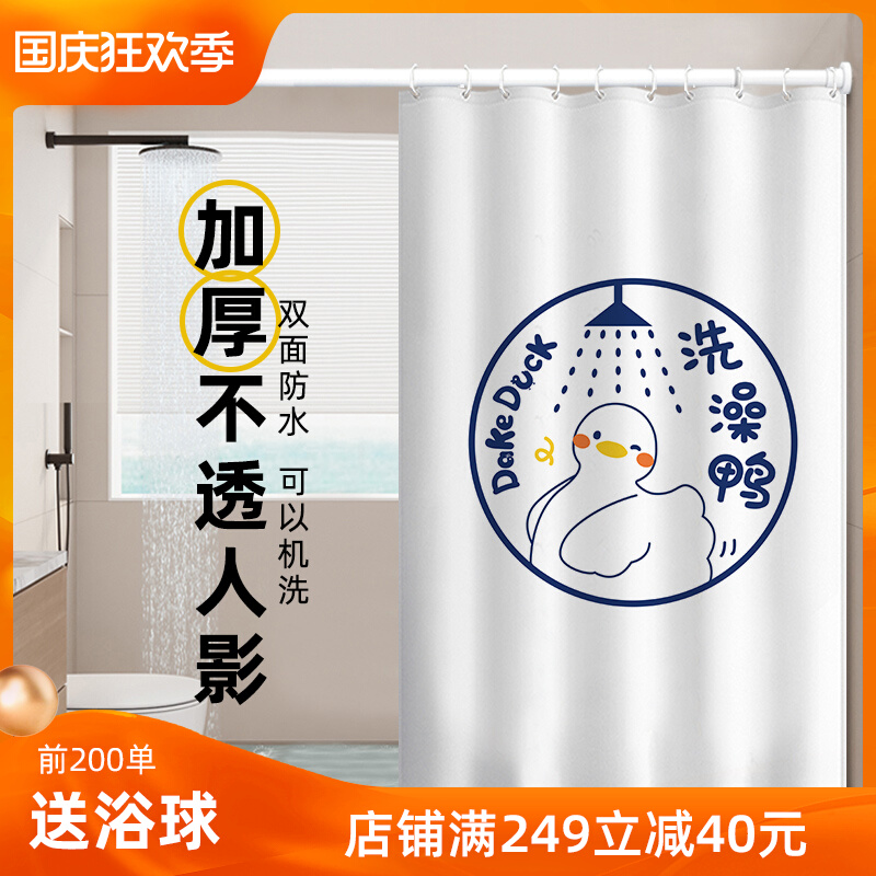 可爱浴帘套装免打孔卡通卫生间防水布加厚防霉高档浴室.帘隔断磁