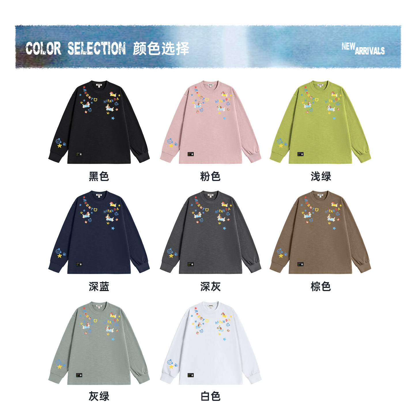 Hipanda你好熊猫潮牌竹节棉纯棉粉色设计感长袖T恤女2026春季新款