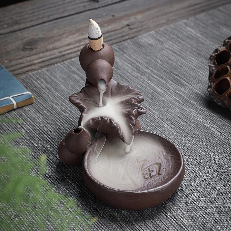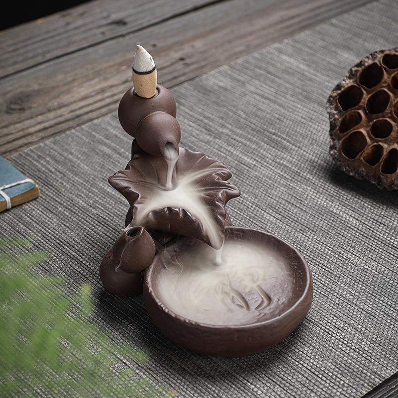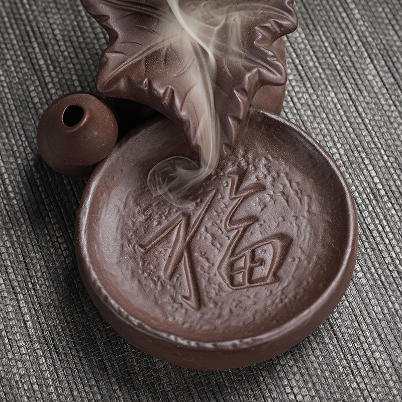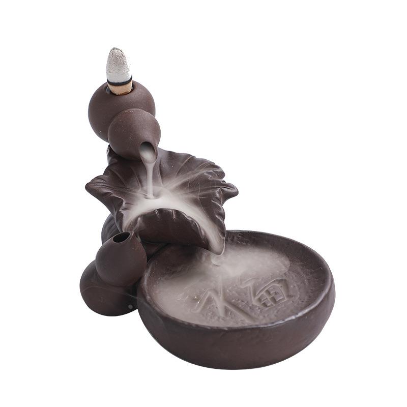 倒流香炉创意摆件紫砂荷叶葫芦静财家居陶瓷工艺品厂家直销