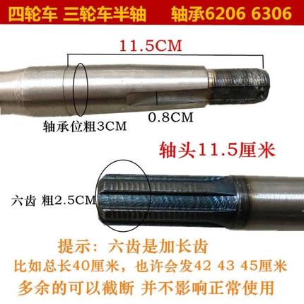 三轮车四轮车电动摩托后桥半轴心车轴6206轴承6齿轴头11.5传动轴