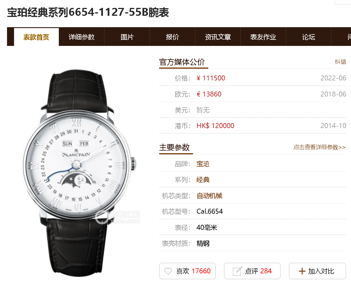 98新 盒证齐全 宝珀经典系列精钢自动机械手表男表6654-1127-55B
