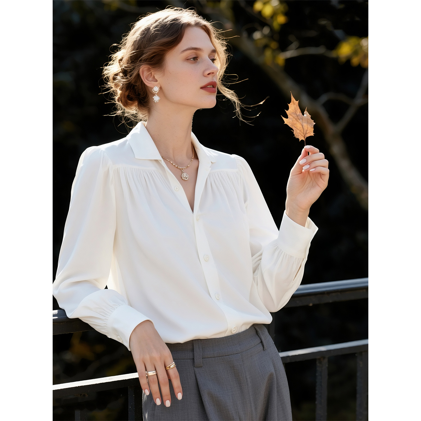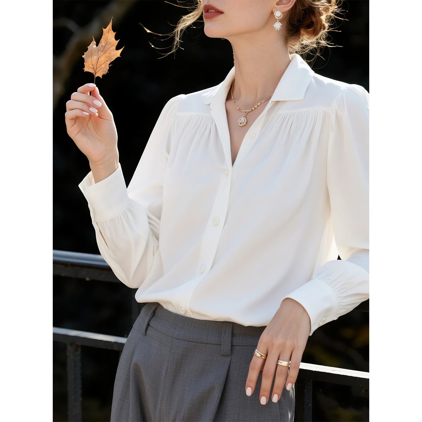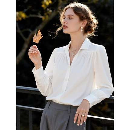 法式轻熟风白色翻领衬衫女2025年秋季新款气质百搭衬衣长袖上衣
