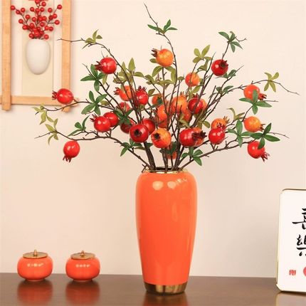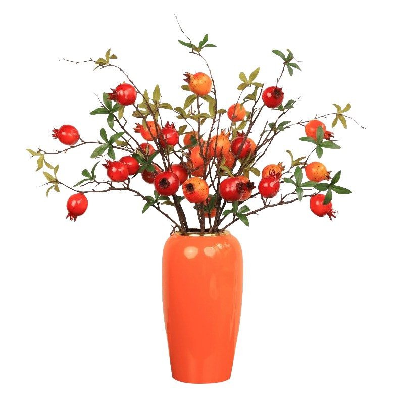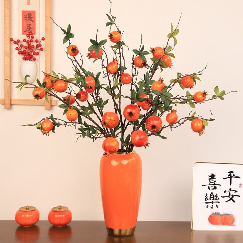现货速发花石榴果树枝客厅餐桌柿子果实假花玄关插花柿柿如意装饰