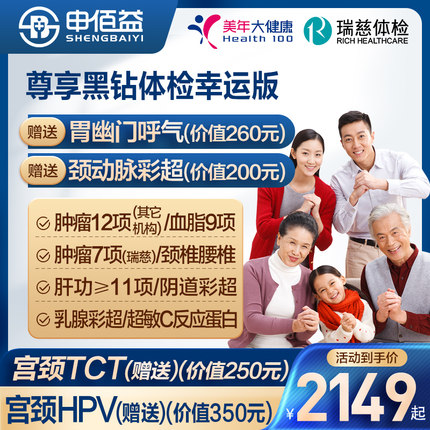 美年大健康瑞慈体检尊享黑钻CT体检套餐中青老年男女通用体检卡