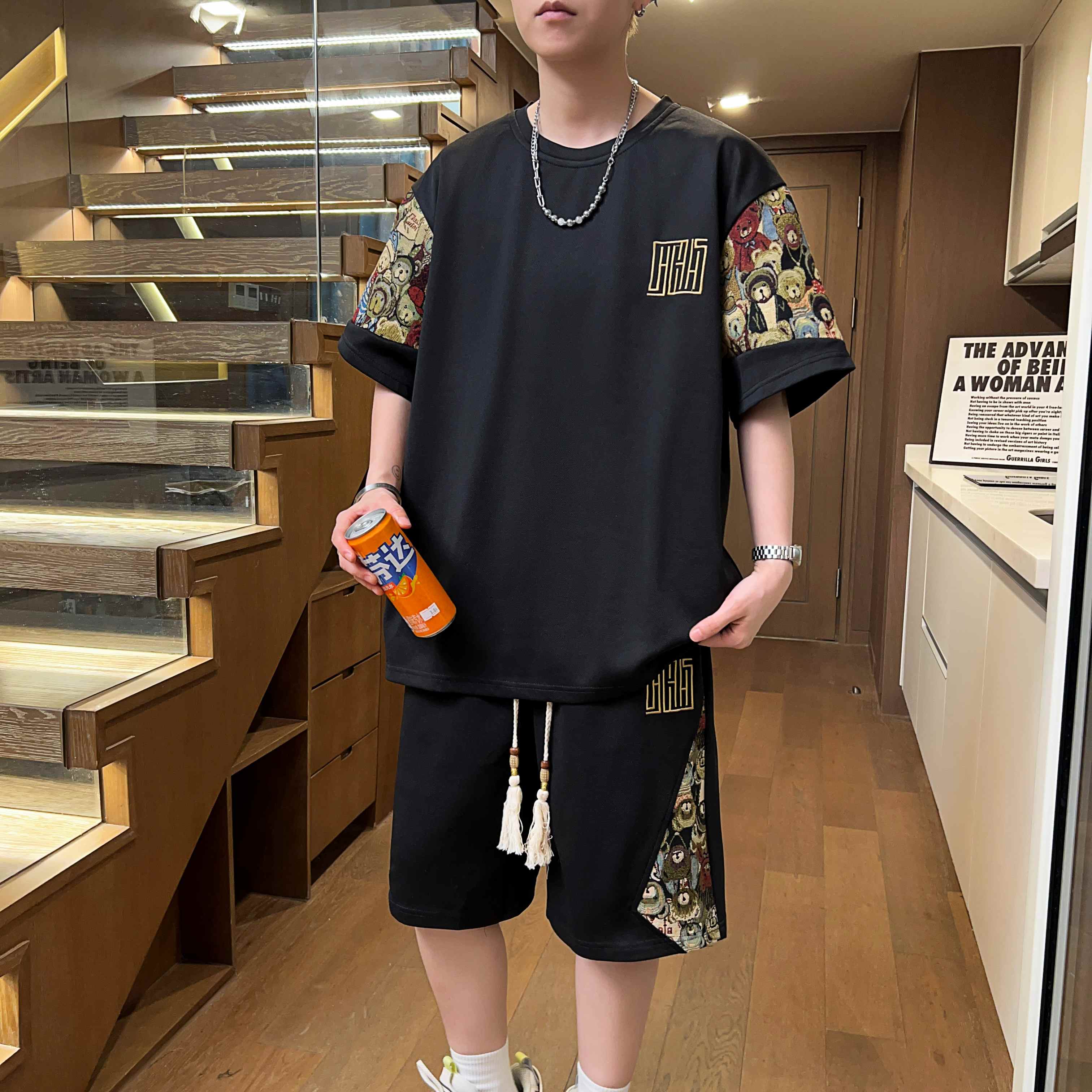 新中式套装男宽松薄款短袖短裤两件套国风夏季大码t恤休闲运动服