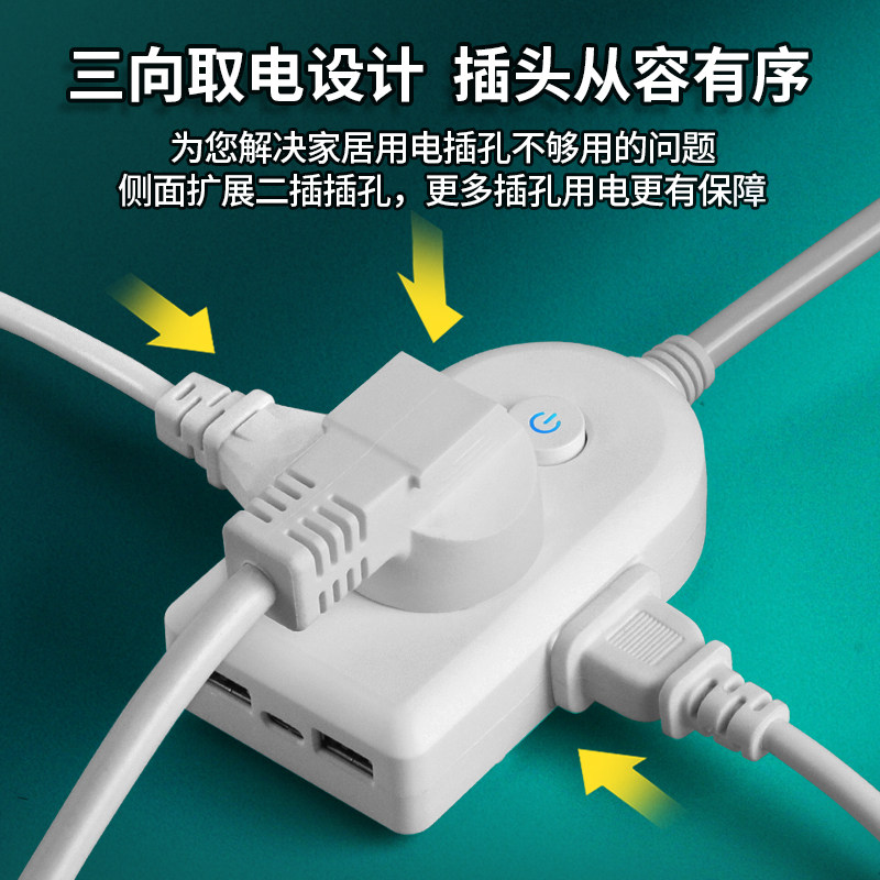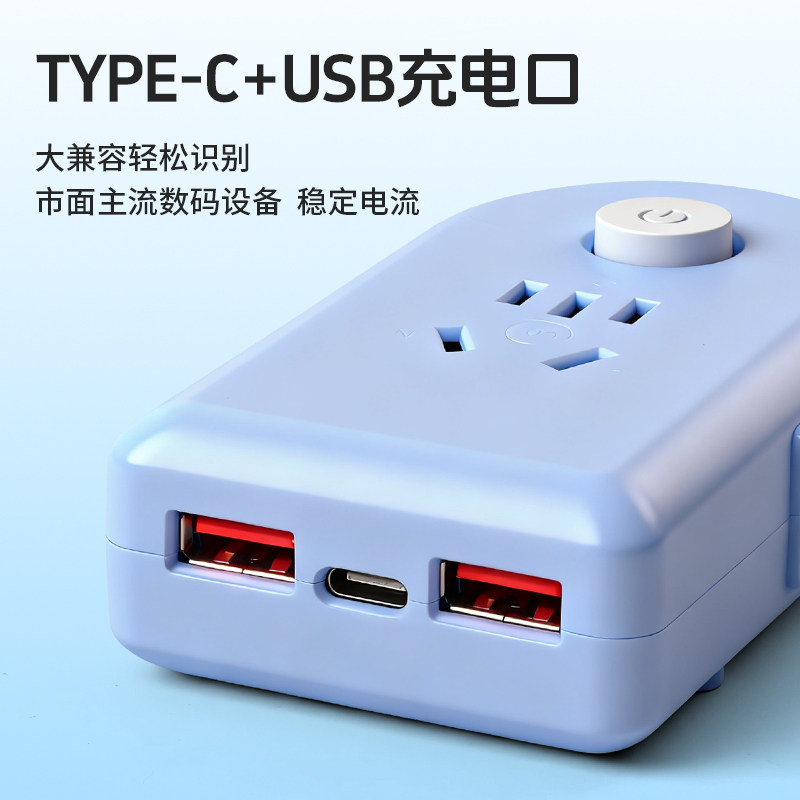 家用迷你插座带线多孔USB快充Type-cz转换器多功能插排长线带开关