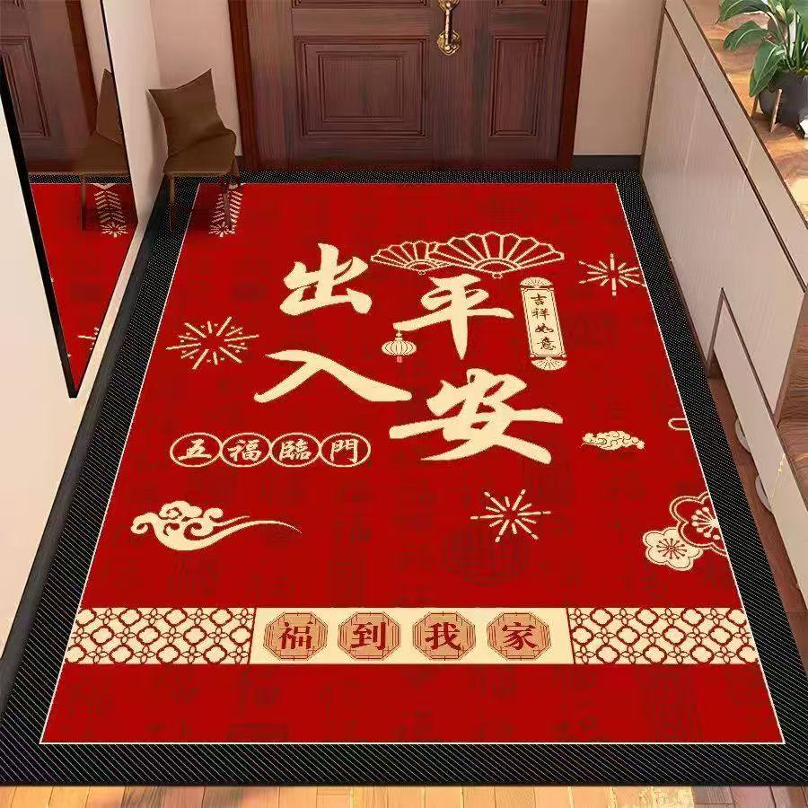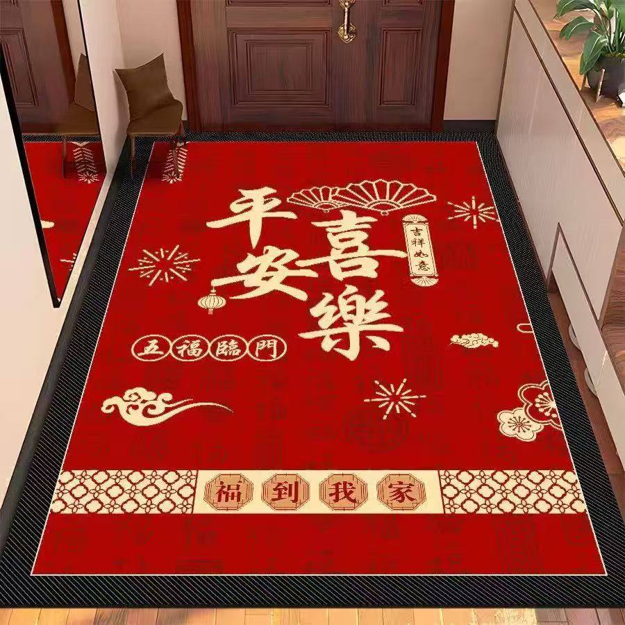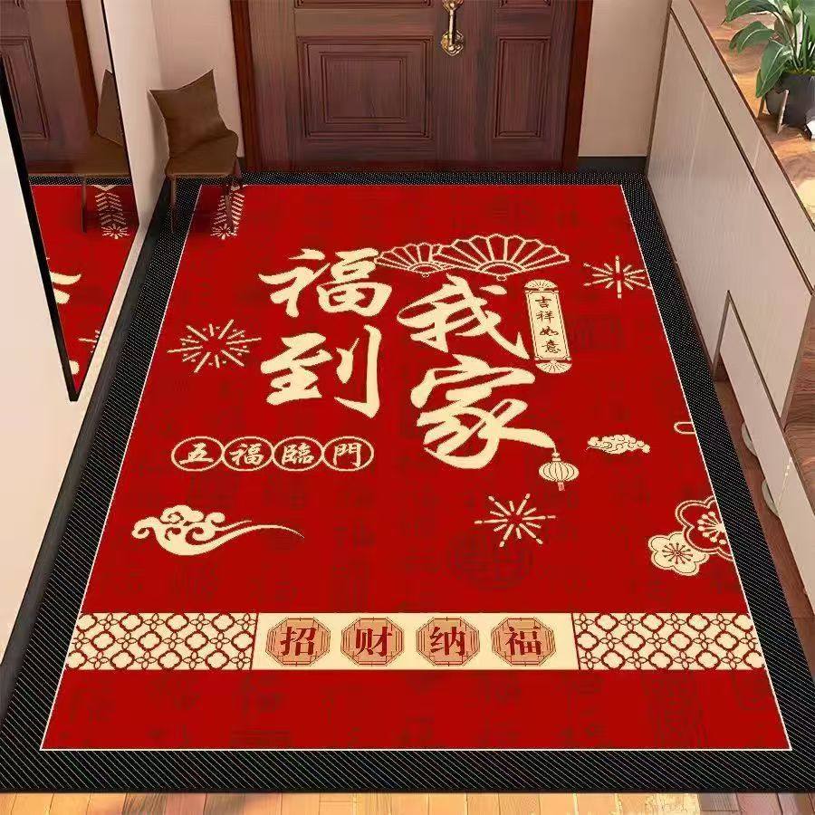 硅藻泥红色喜庆加厚门口地垫入户进门垫玄关脚垫吸水防滑耐磨地毯