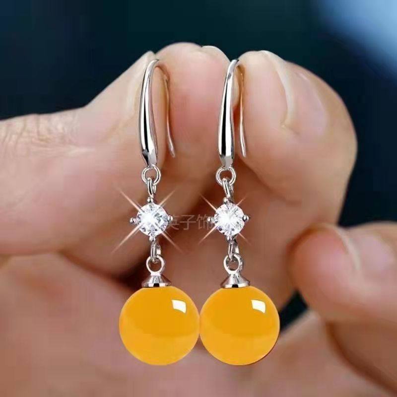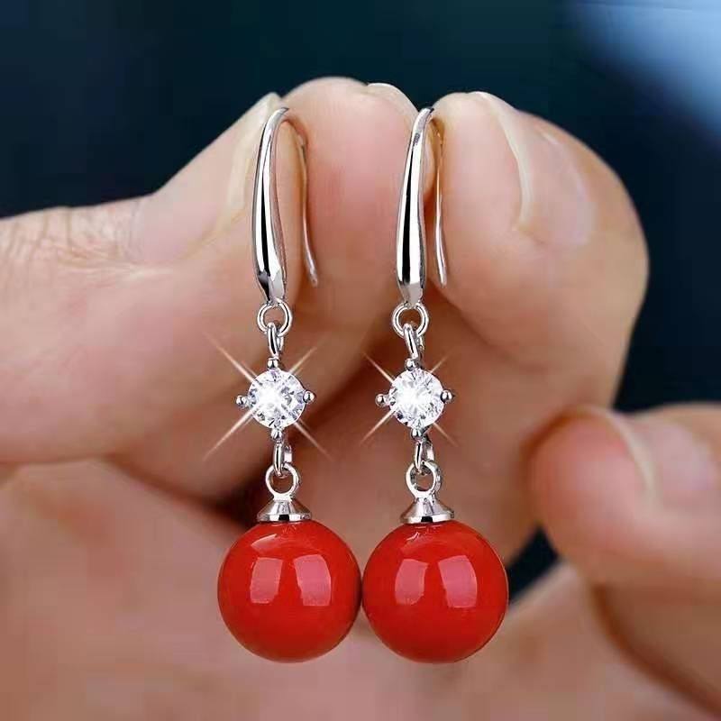 正品s925纯银珍珠天然玛瑙耳环女网红耳钉耳坠防过敏韩版个性气质
