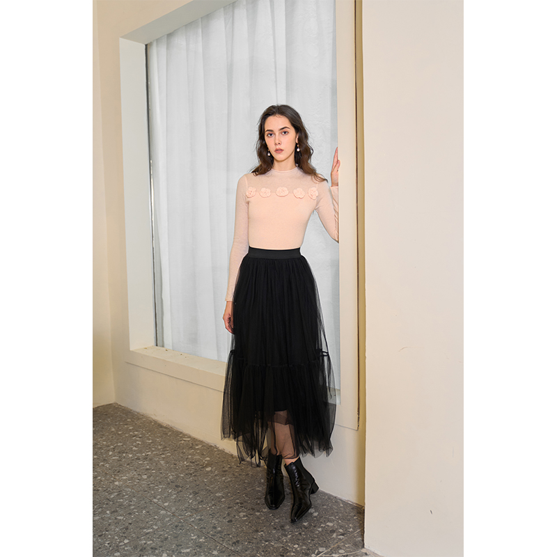 HeyDress网纱半身裙女春秋浪漫度假轻盈飘逸层次感宽松A字裙子