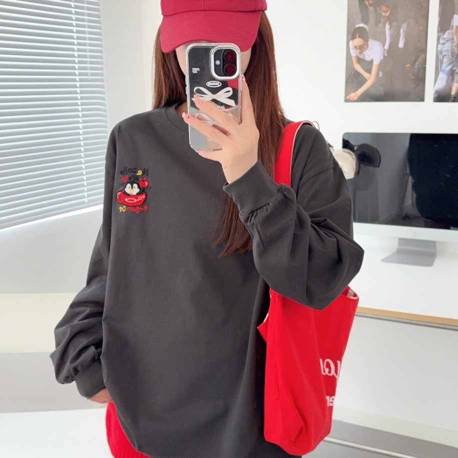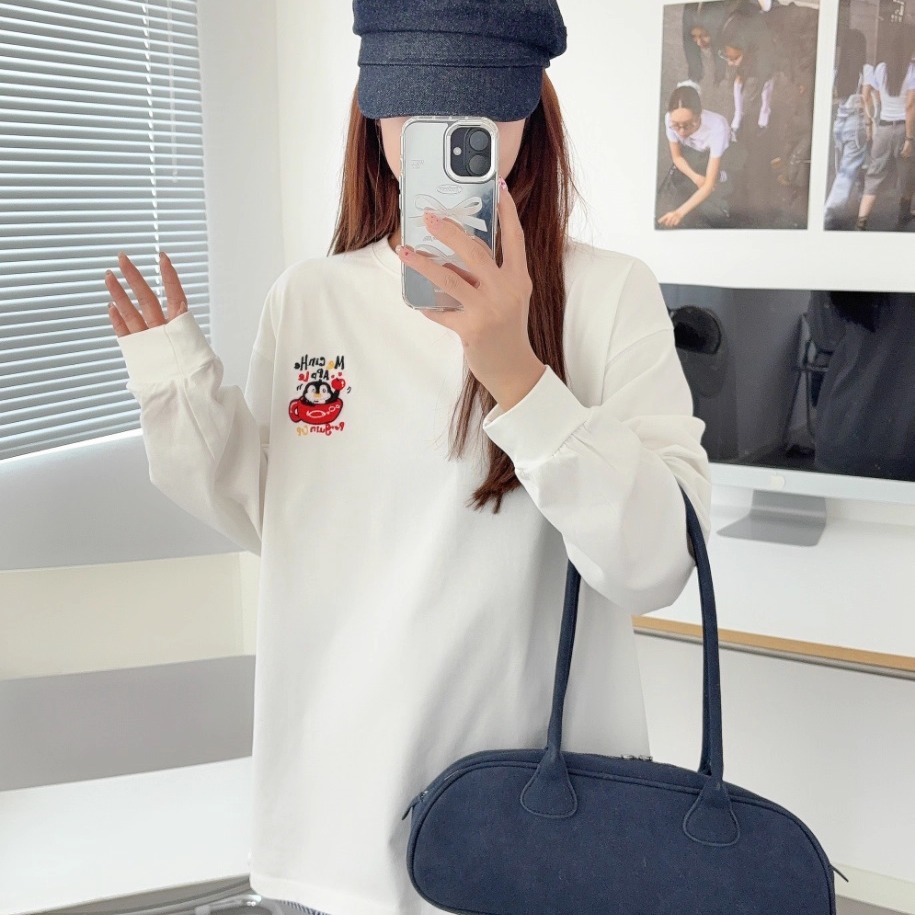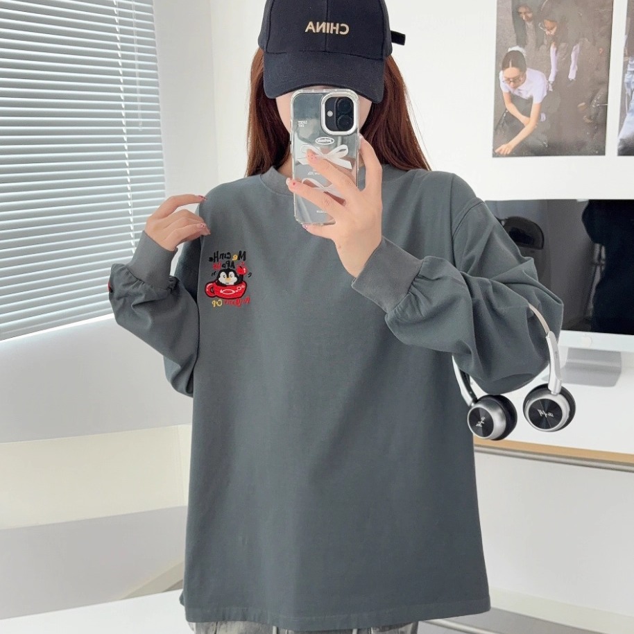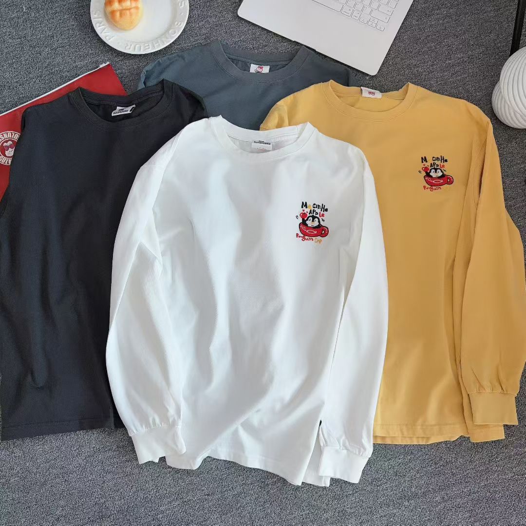 纸袋家秋季新款「刺绣企鹅简约长袖」09068纯棉双纱舒适T恤衫