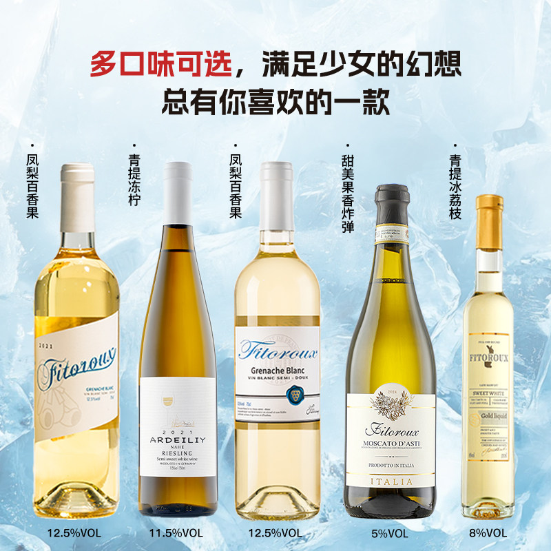 【自营】荔枝冰茉莉半甜白葡萄酒进口莫斯卡托起泡酒香槟气泡果酒