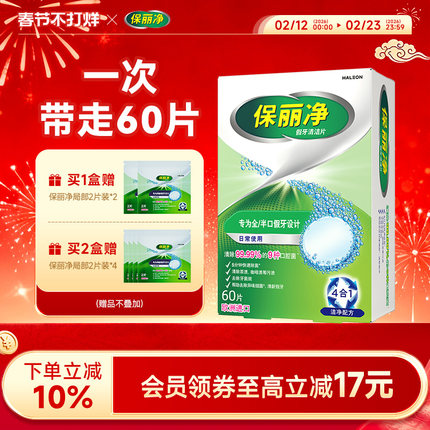 保丽净全半口假牙清洁片60清洗正畸保持隐形牙套清洁剂除菌MRC