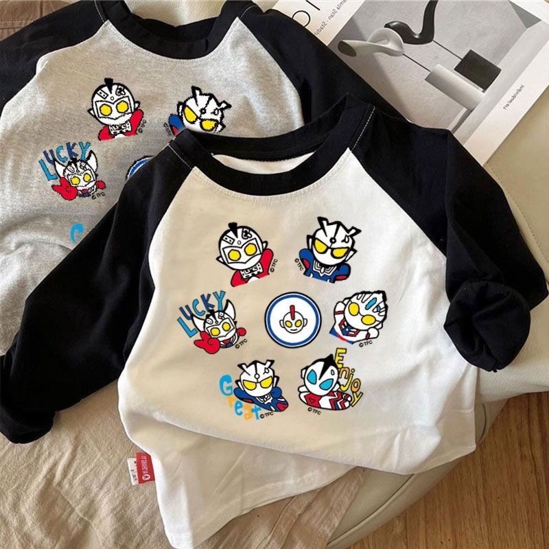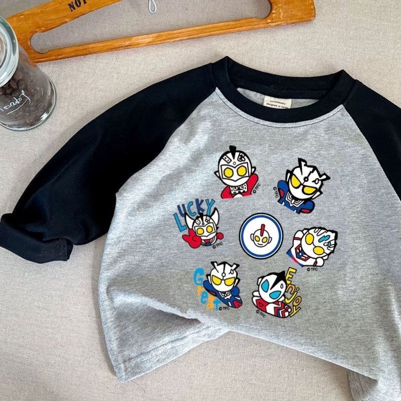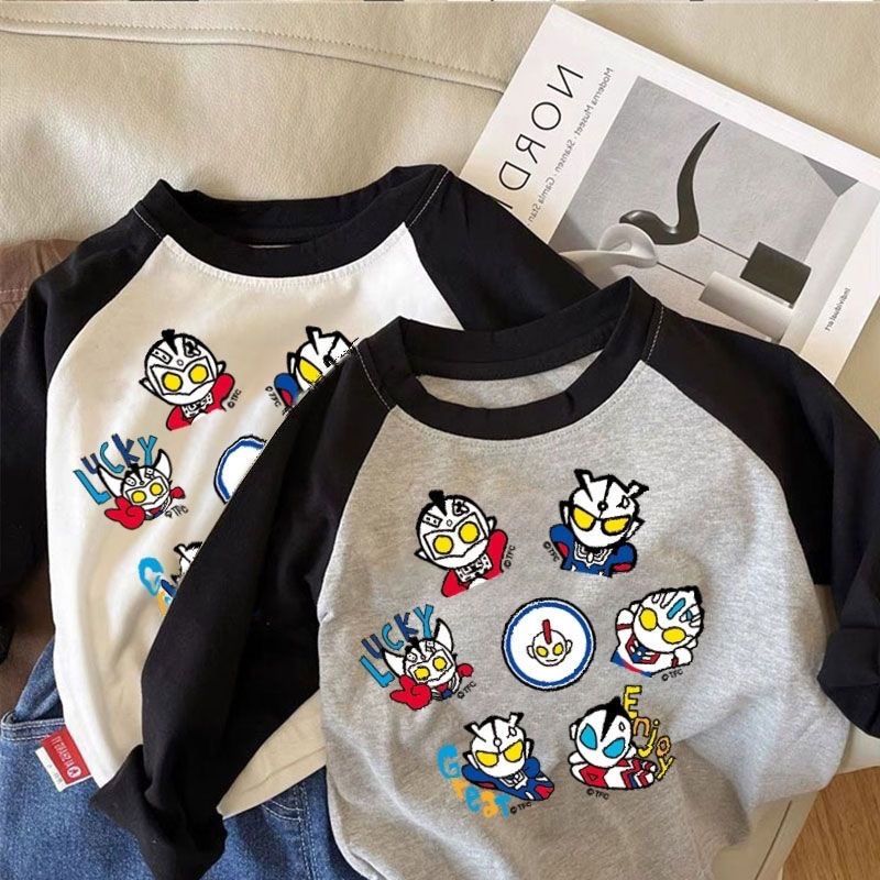 儿童春秋新款拼色长袖T恤宝宝韩版奥特曼男童卡通印花打底衫上衣