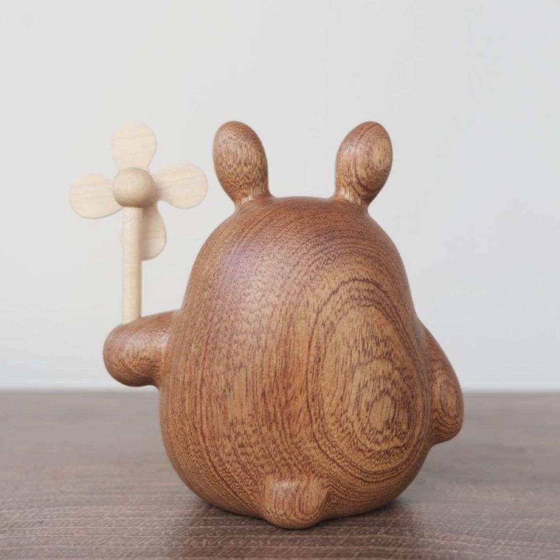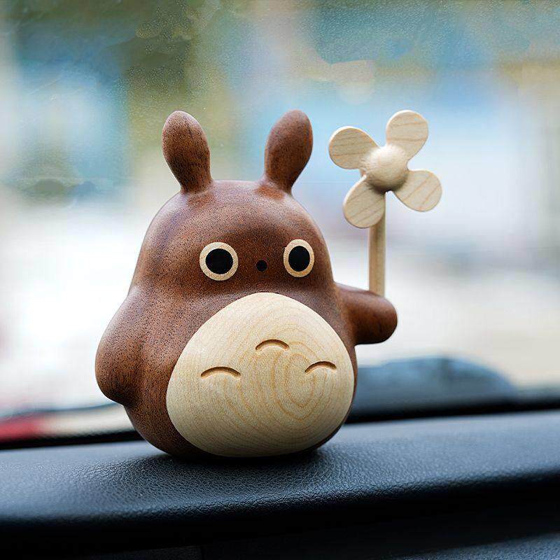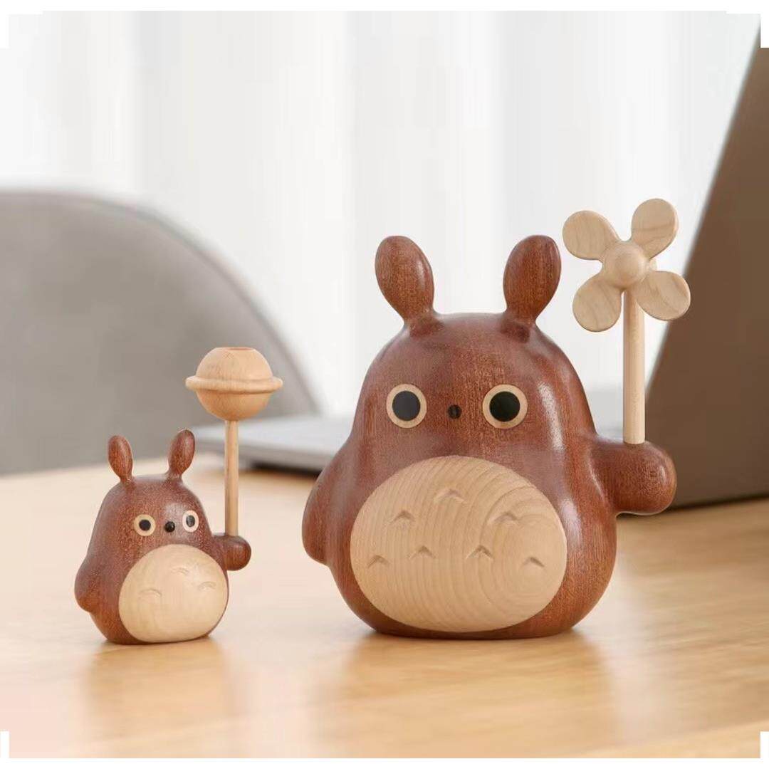 实木龙猫摆件风车木质车载玩偶装饰桌面花插卡通创意可爱礼物