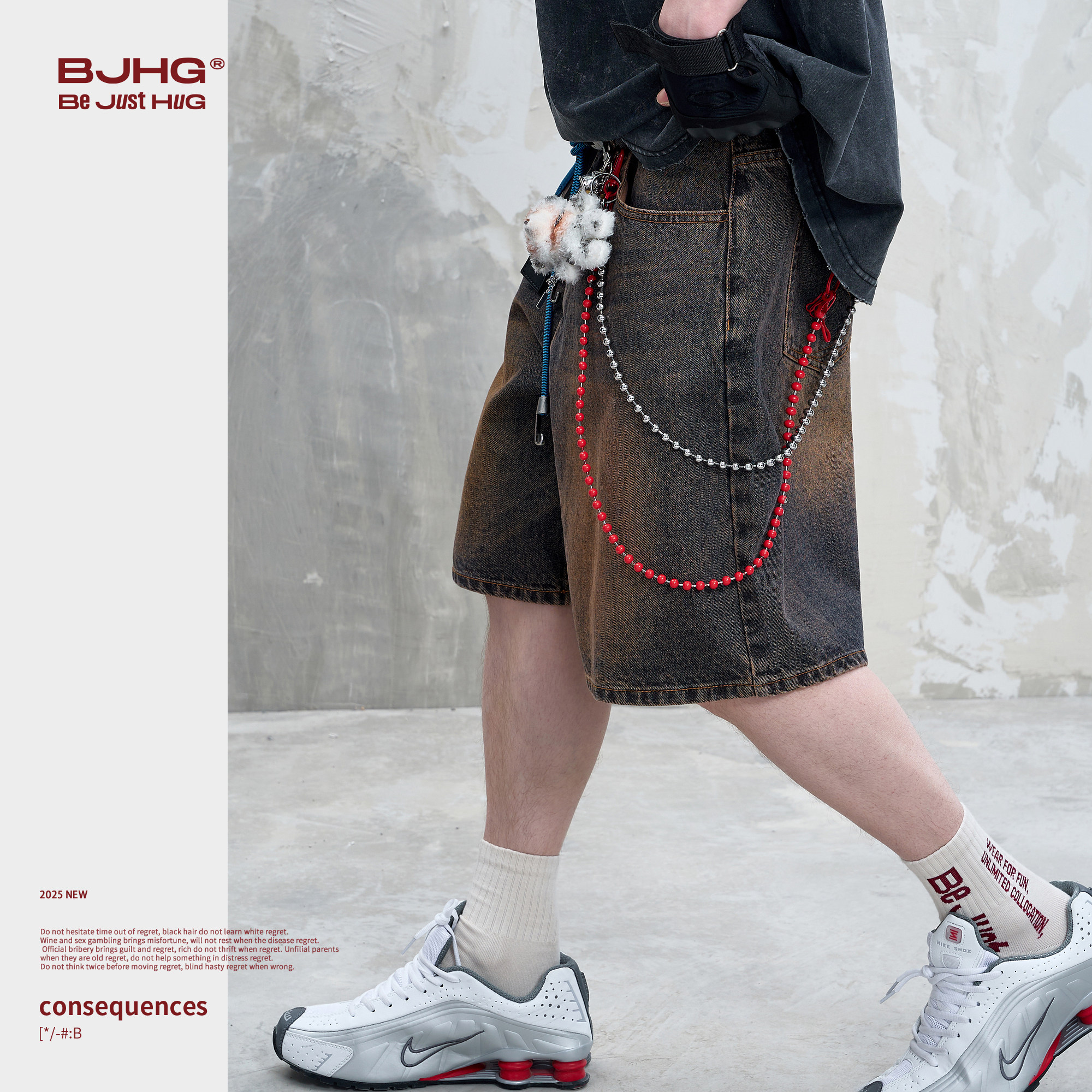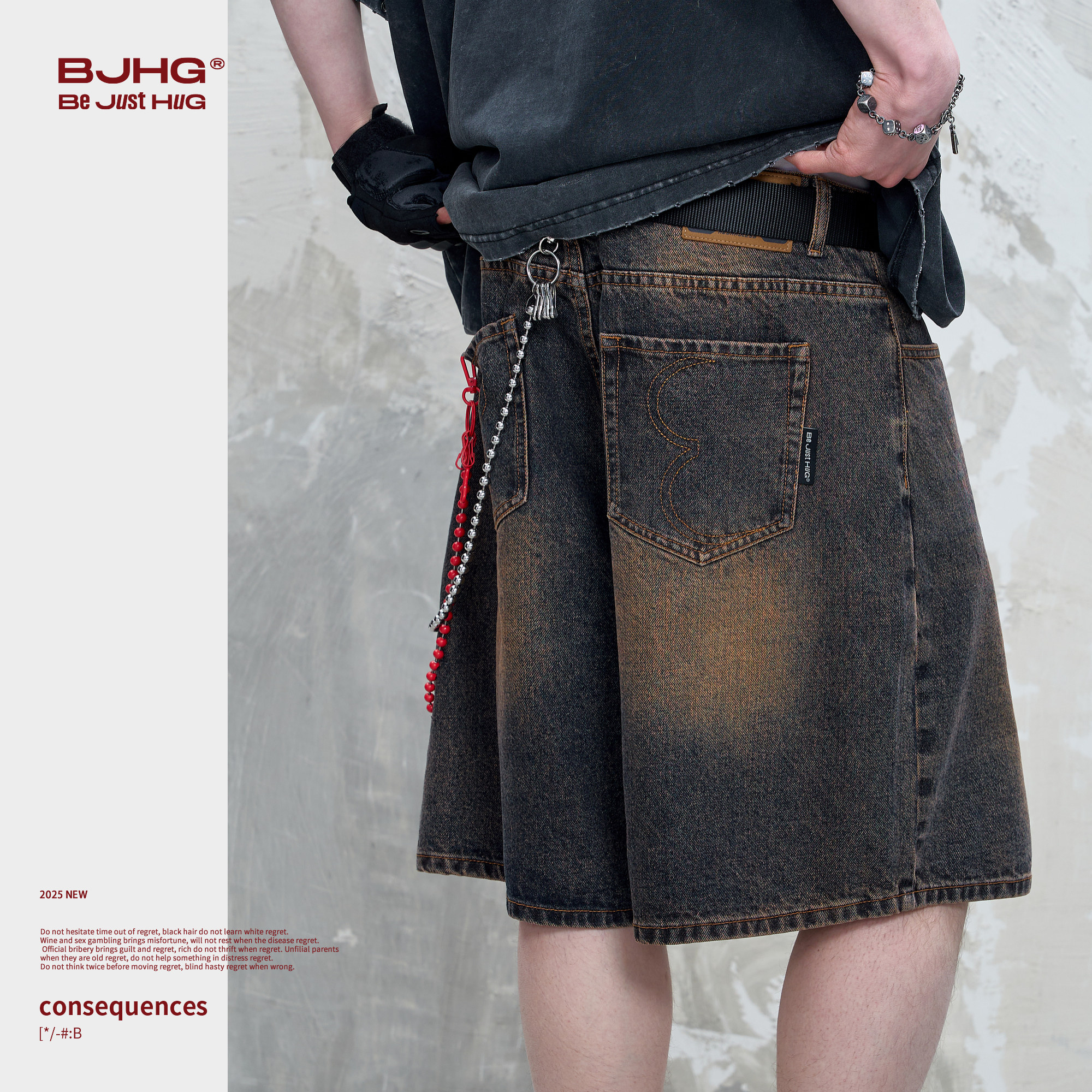 BJHG不计后果美式牛仔短裤男款夏季潮牌复古高街痞帅宽松五分裤子