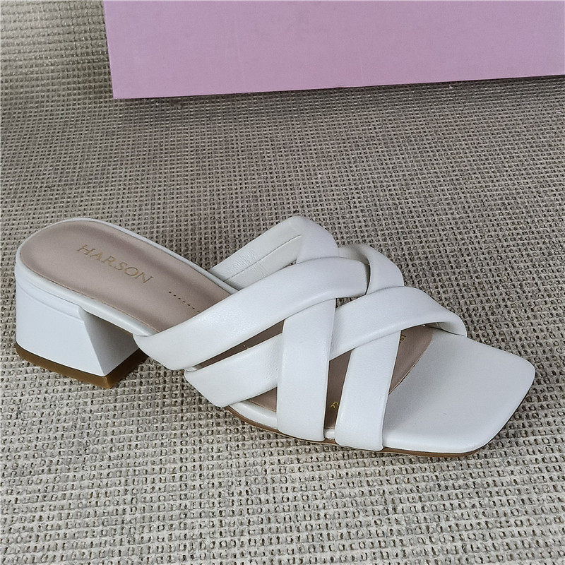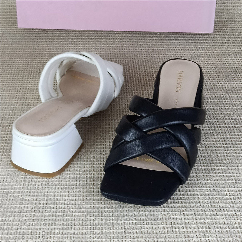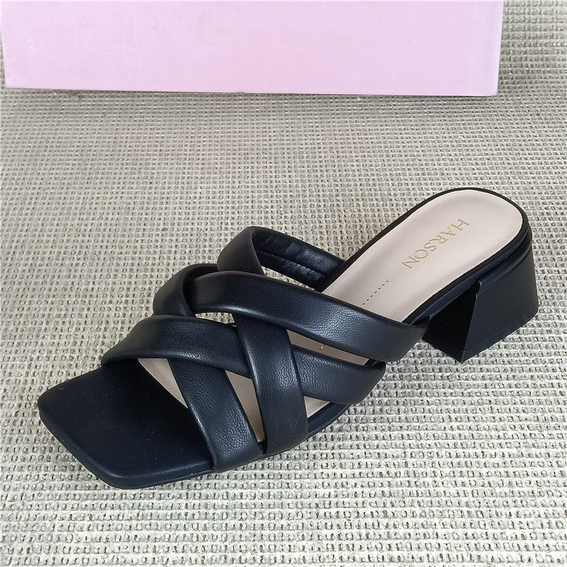 哈森正品撤柜断码处理真皮女鞋粗跟露趾夏季高跟凉拖鞋粗跟外穿鞋