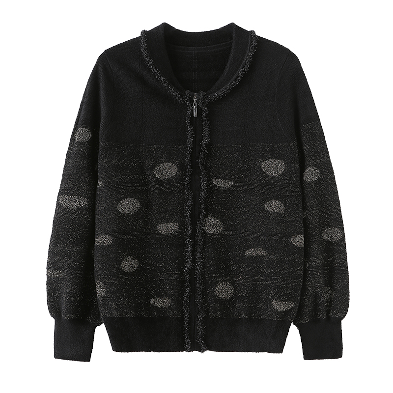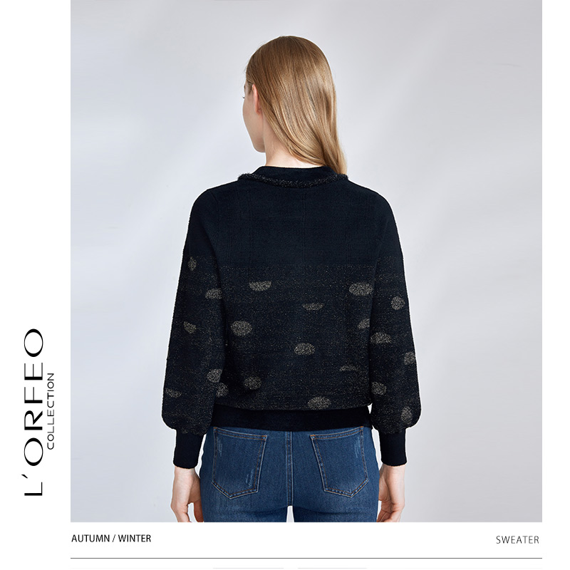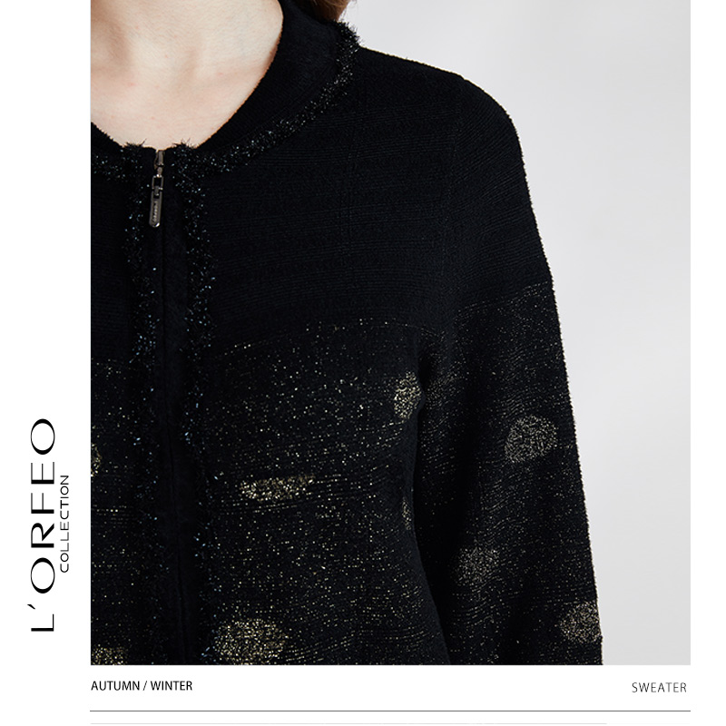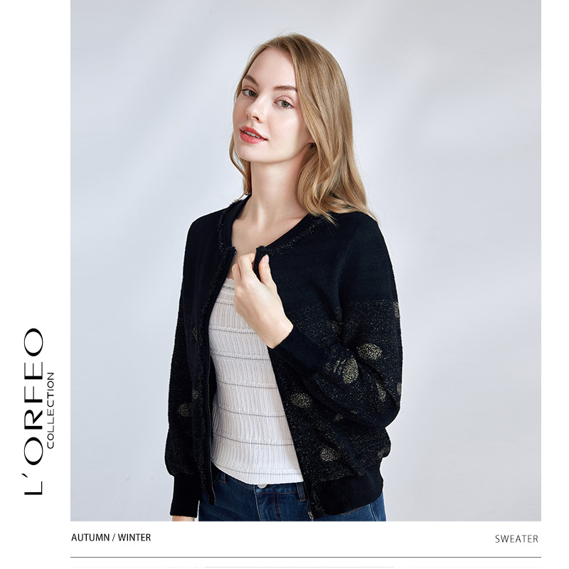 L'ORFEO/奥菲欧棒球领开襟提花针织衫花纱开衫休闲显瘦百搭外套女