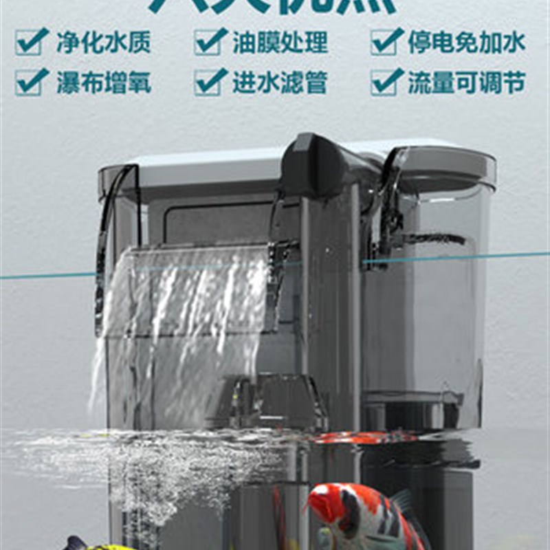 鱼缸过滤器小型瀑布式壁挂净水循环水泵增氧家用静音三合一过滤泵