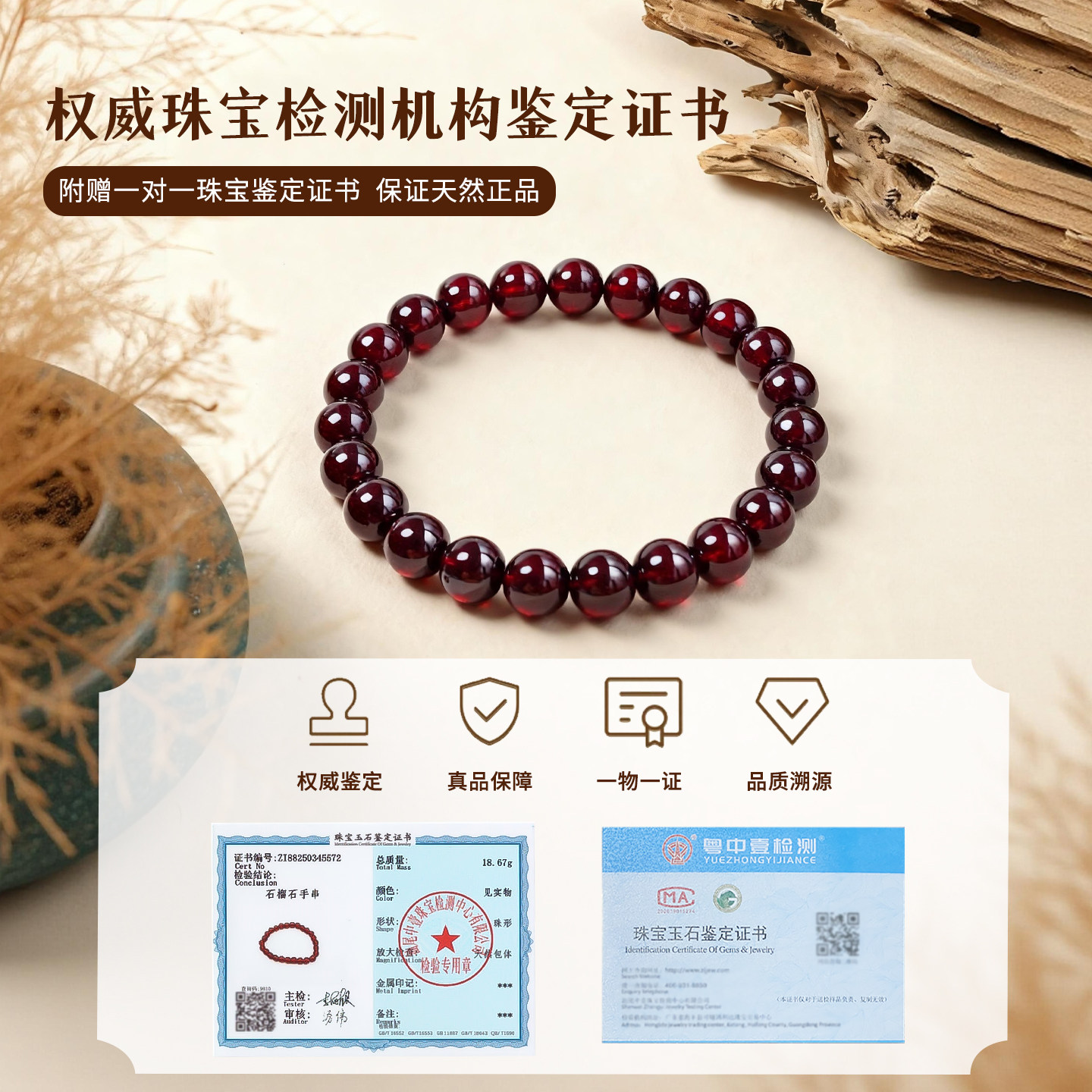 天然酒红石榴石手串收藏级真品手链女款马年本命年转运官方旗舰店