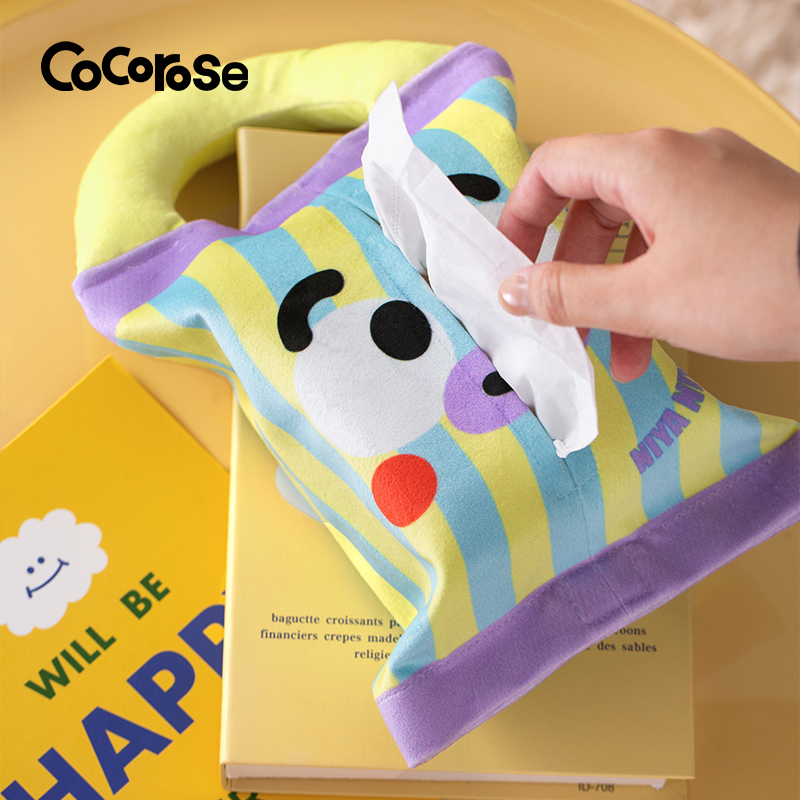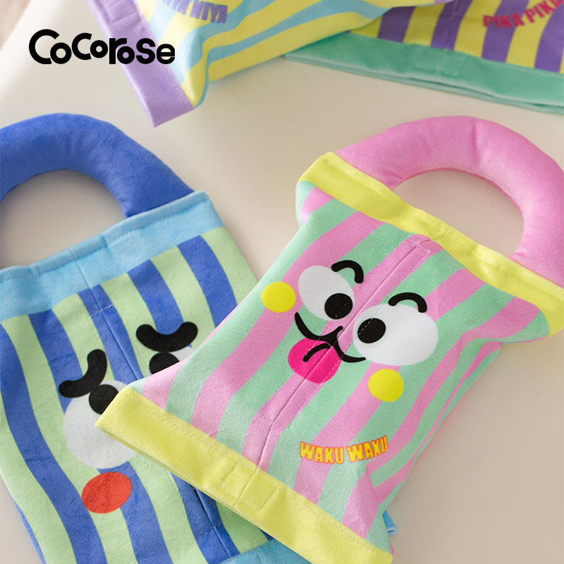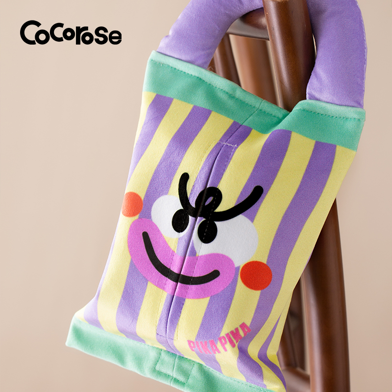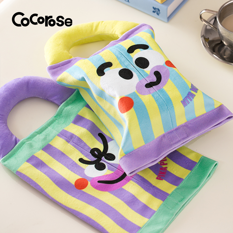 小怪兽彩色多巴胺卡通条纹表情包布艺纸巾套车载车载挂式抽纸巾盒