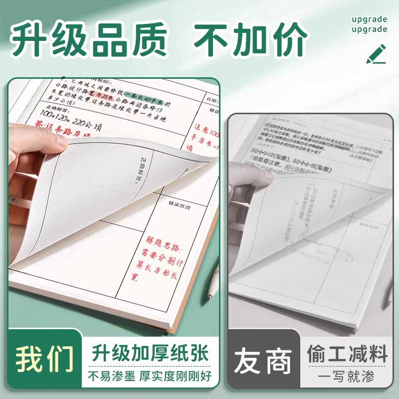 牛皮纸16K错题本作业本子小学生专用纠错本语文数学错题整理学习改错题本集初中生高中生错题簿笔记本批发