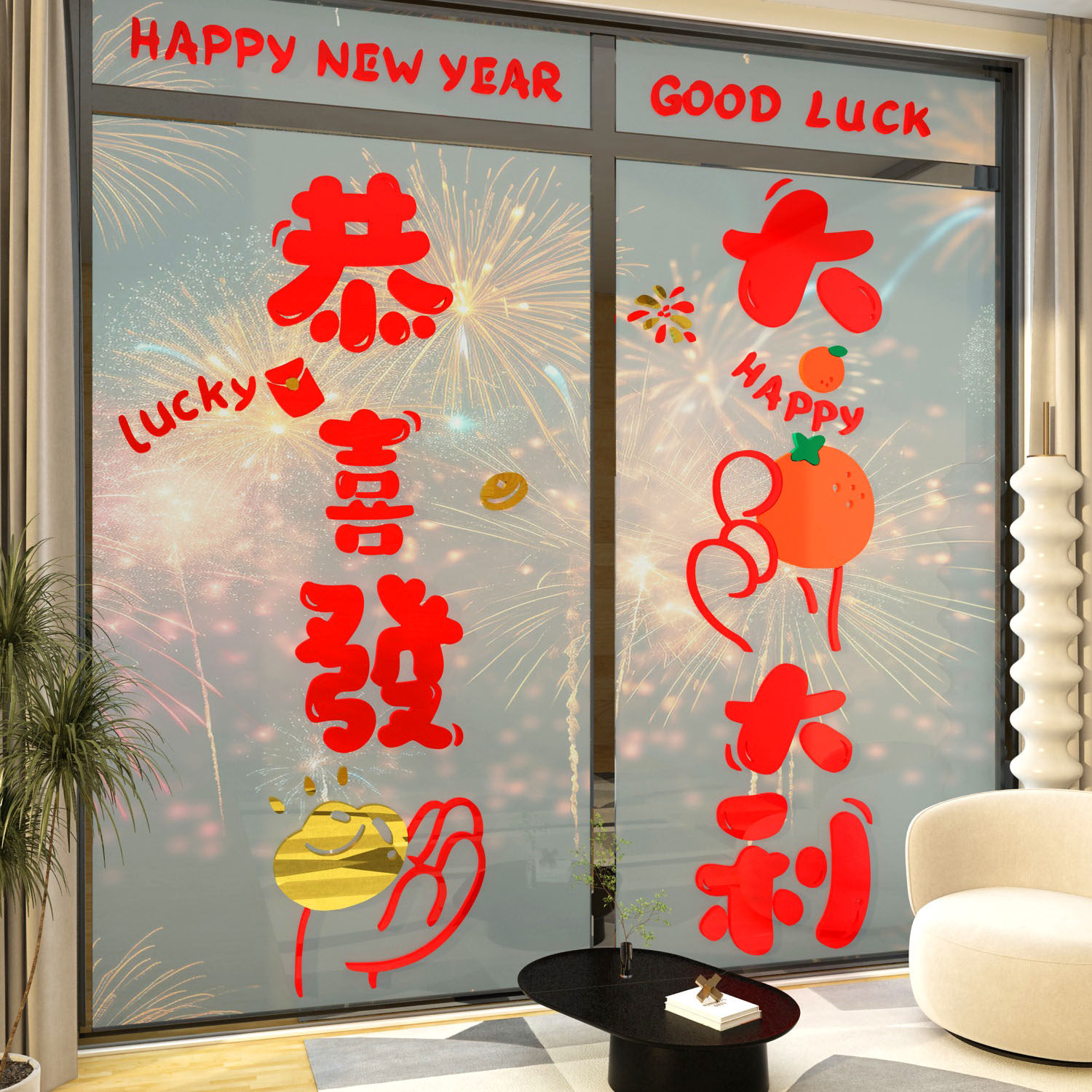 2026马过新年春节氛围布置电视机背景墙面装饰点缀高级感贴画客厅