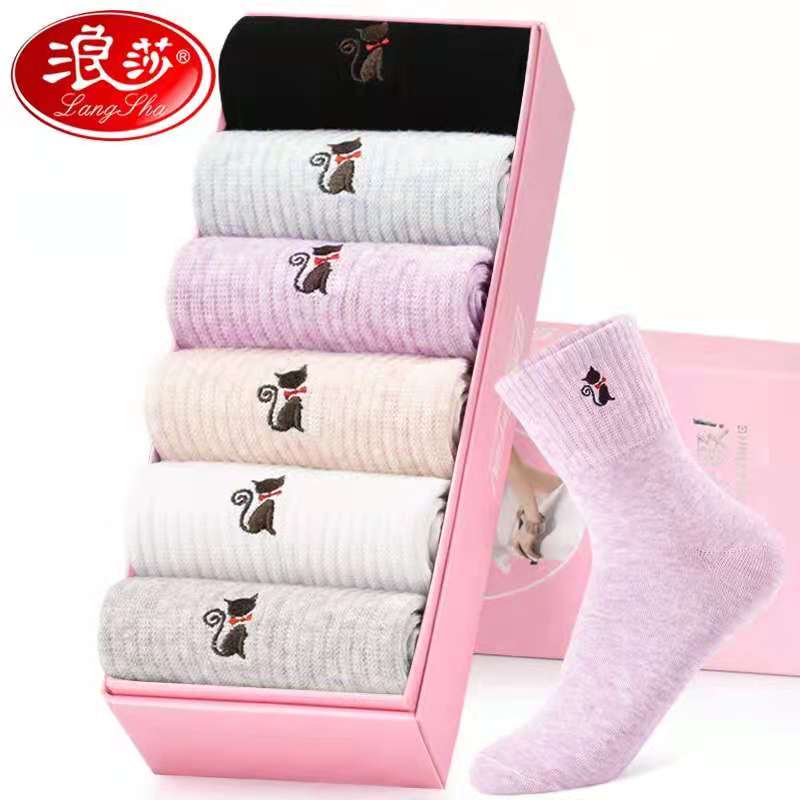 浪莎袜子女中筒春秋款全棉袜女士棉袜厚款女袜防臭秋冬季纯棉女袜