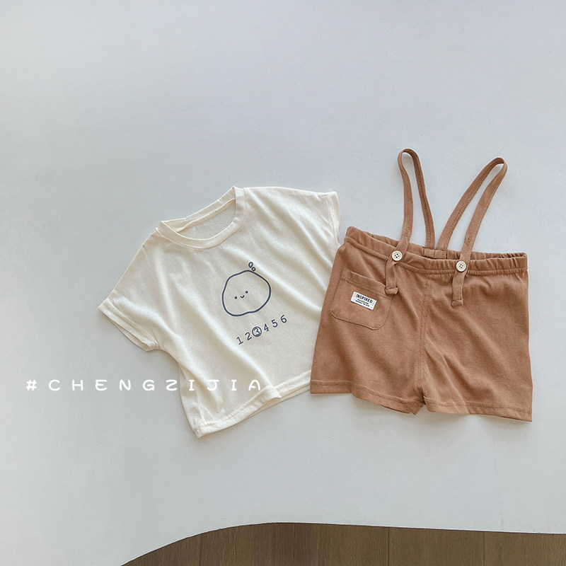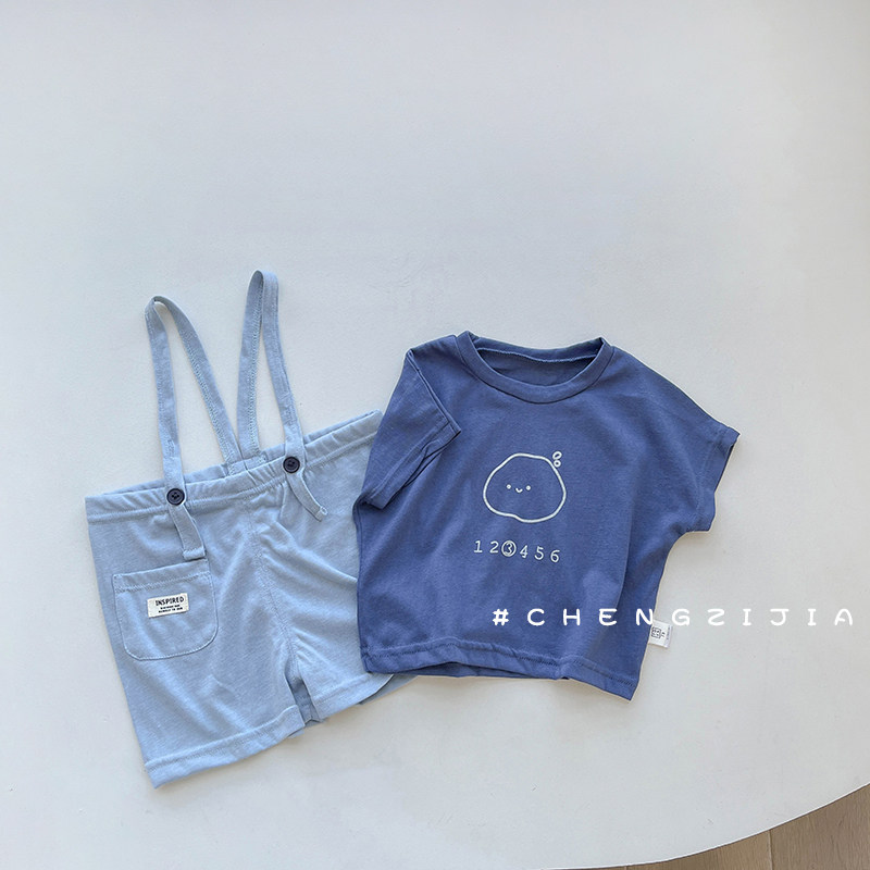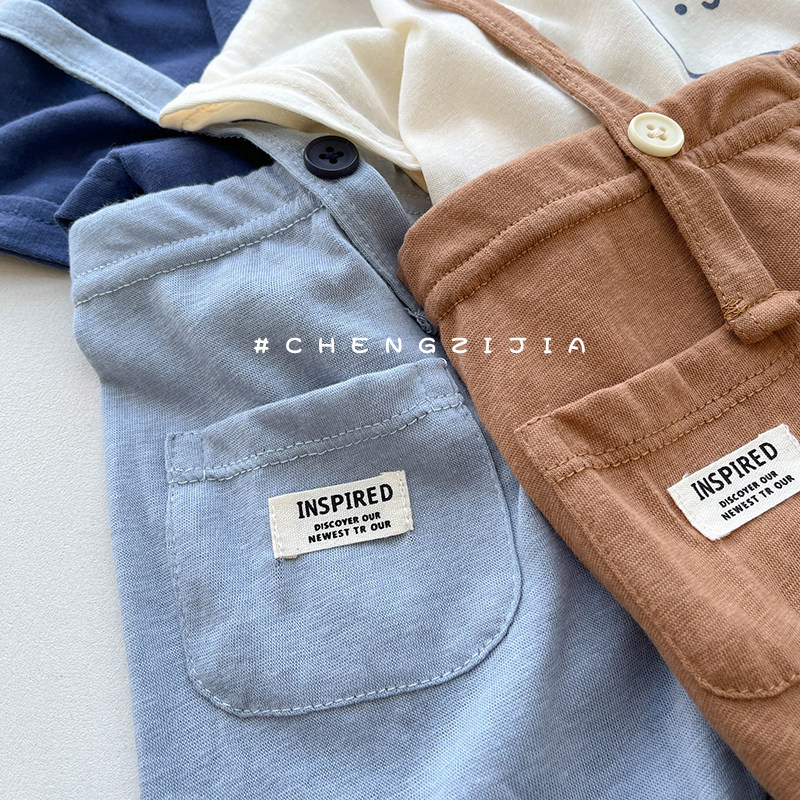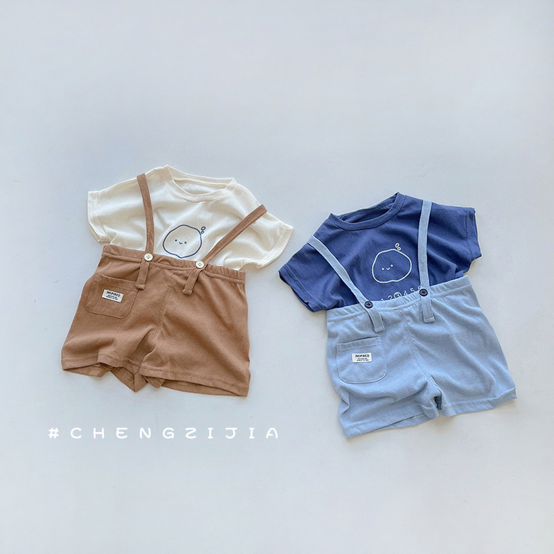 儿童背带裤套装夏季薄款男童女宝宝短袖休闲裤子两件套小童夏装潮