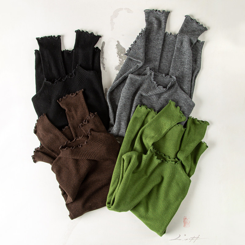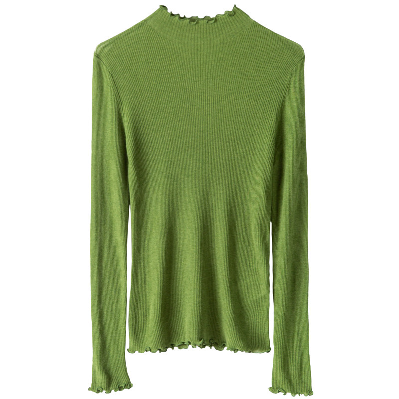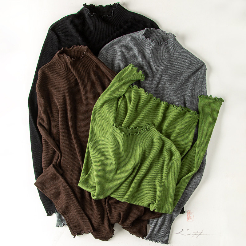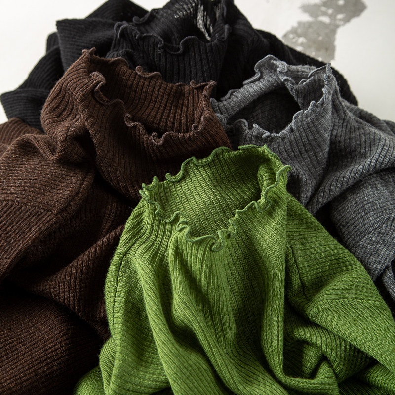 优雅女人味轻柔舒适美丽诺羊毛衫半高木耳边花边领针织衫打底衫女