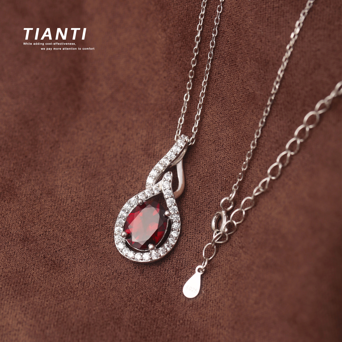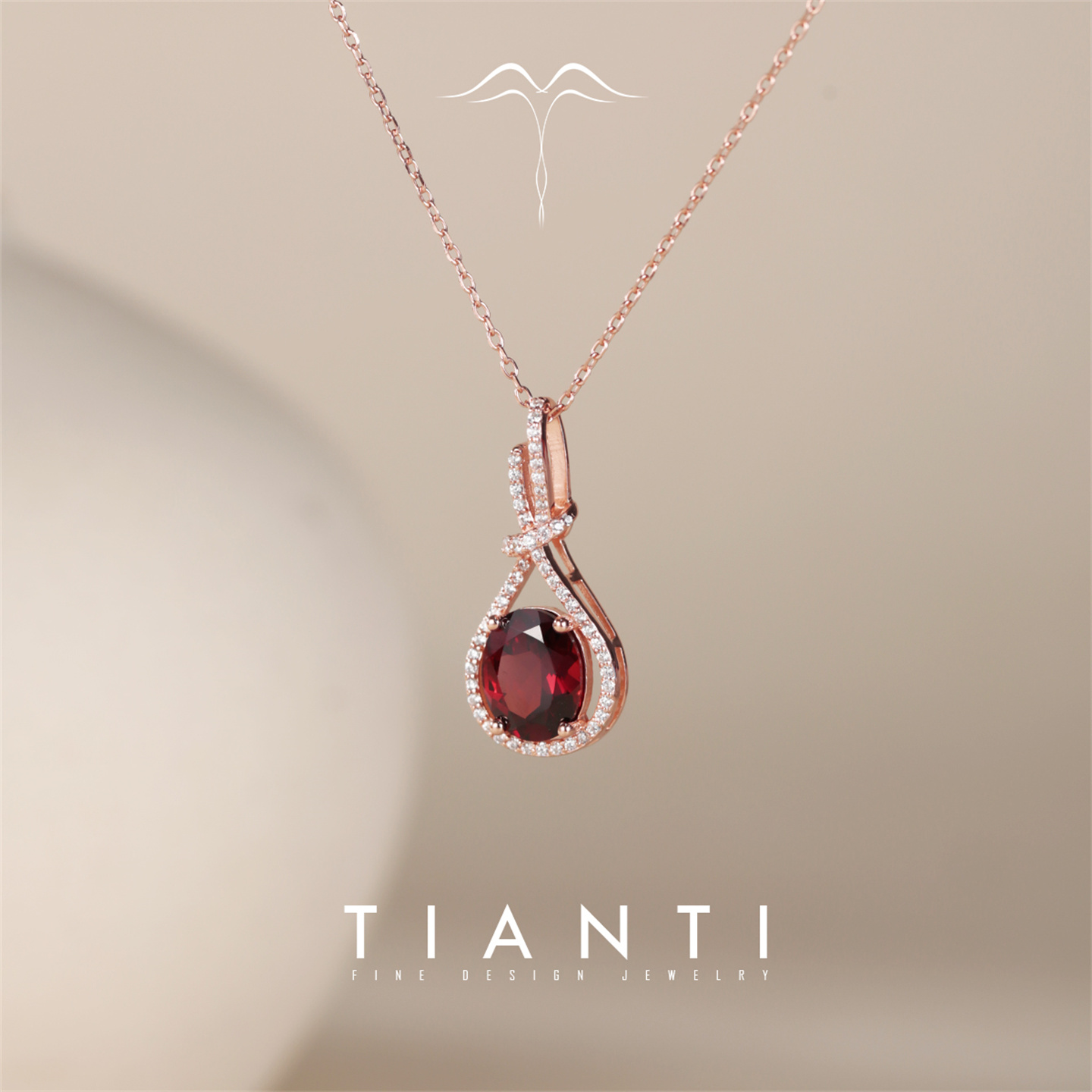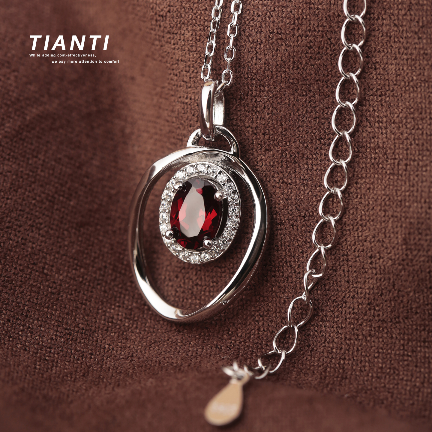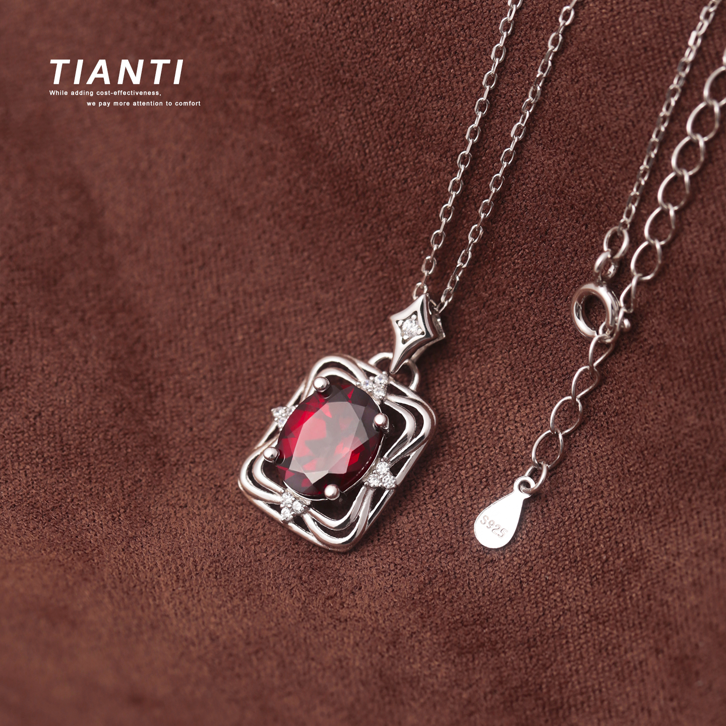 天然鸽血红石榴石宝石吊坠S925纯银镀18K金锁骨项链复古高级感女