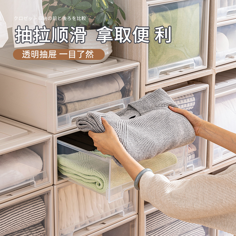 收纳箱抽屉式储物柜塑料家用透明衣柜衣服衣物置物柜子内衣整理盒