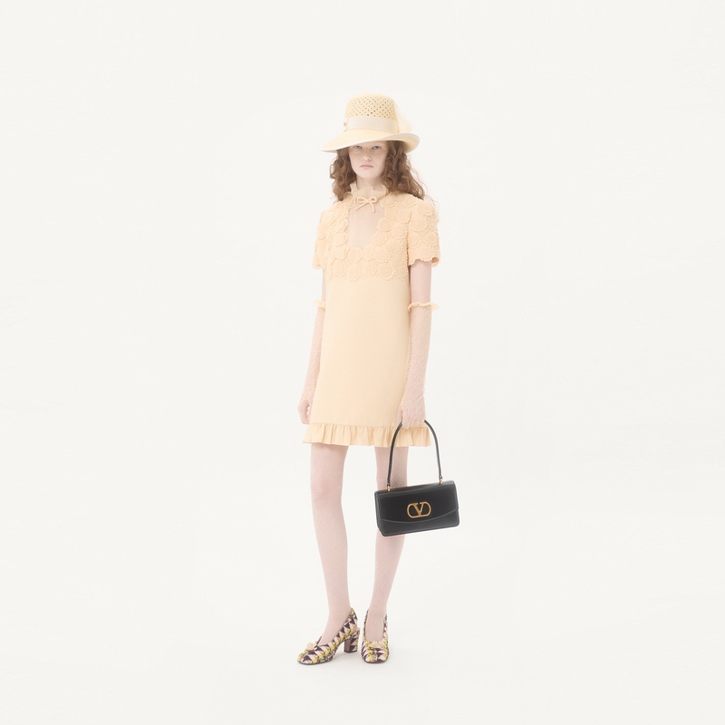 [6期免息]华伦天奴VALENTINO女士 CREPE COUTURE 短款刺绣连衣裙