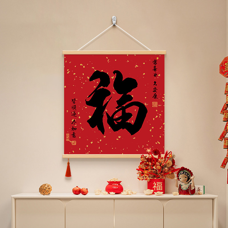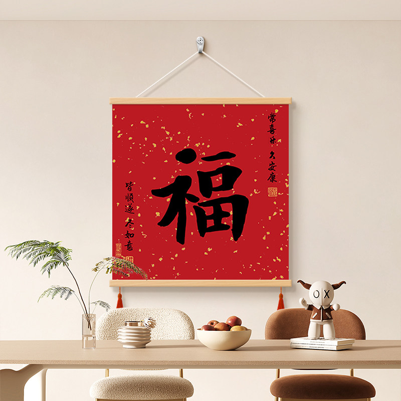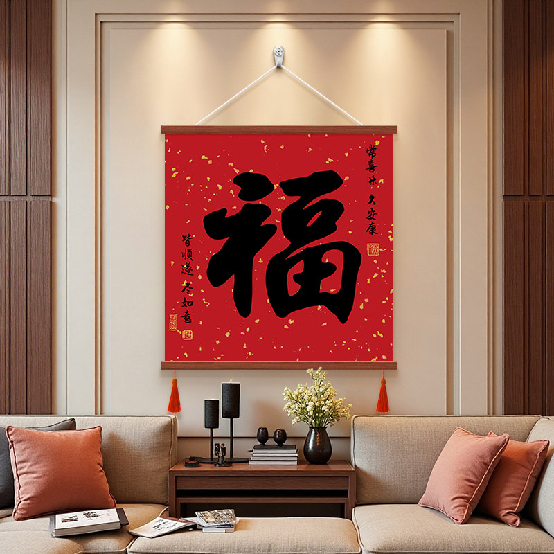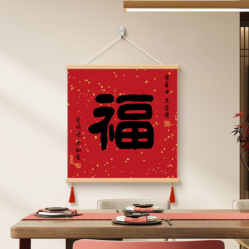 康熙福字客厅餐厅装饰画新中式电表箱遮丑挂画茶室办公室书法字画