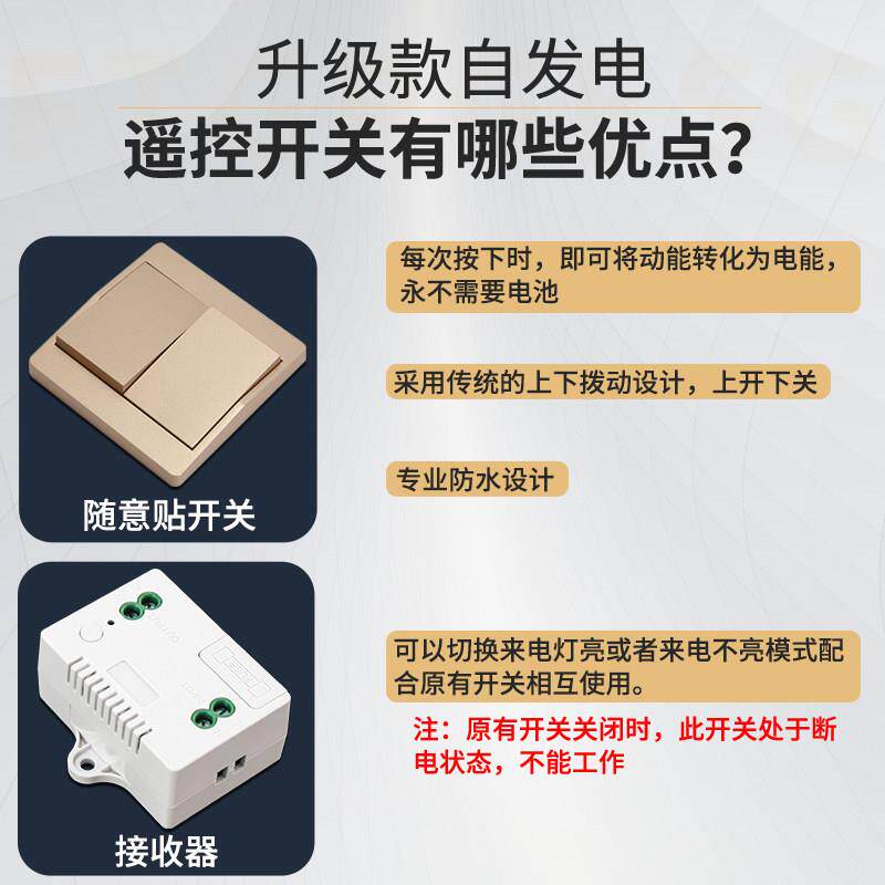 自发电遥控开关不用电池随意贴无线免布线开关家用卧室灯具控制器