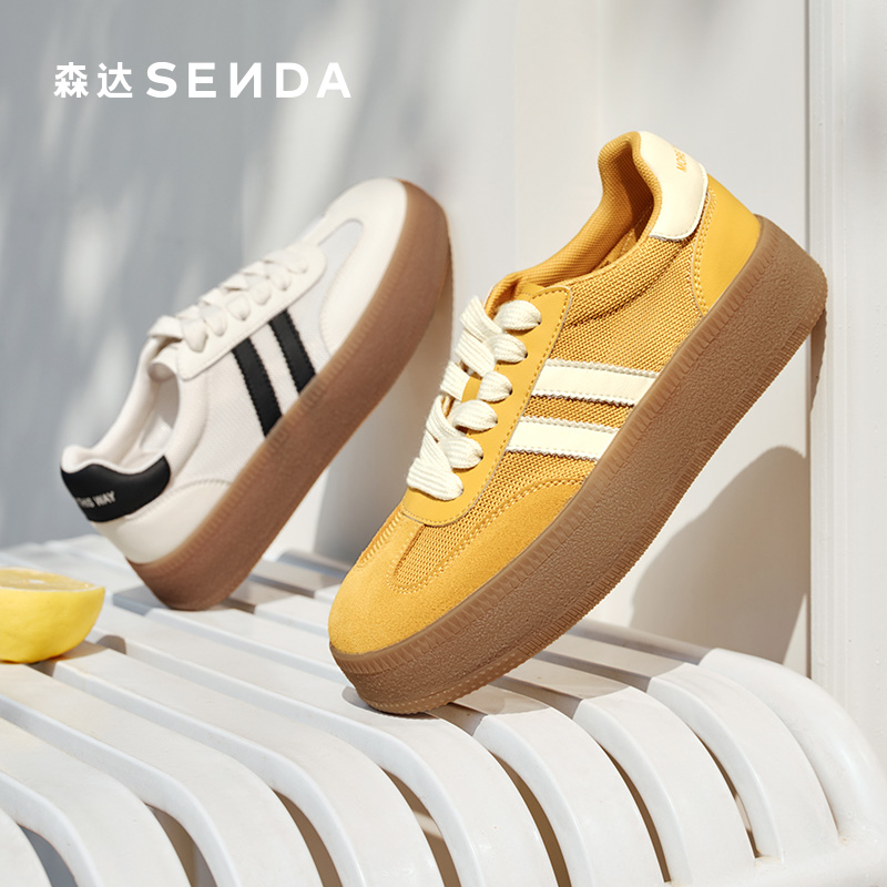 森达网面德训鞋女款2025夏季新款拼接透气厚底休闲板鞋ZTG24BM5