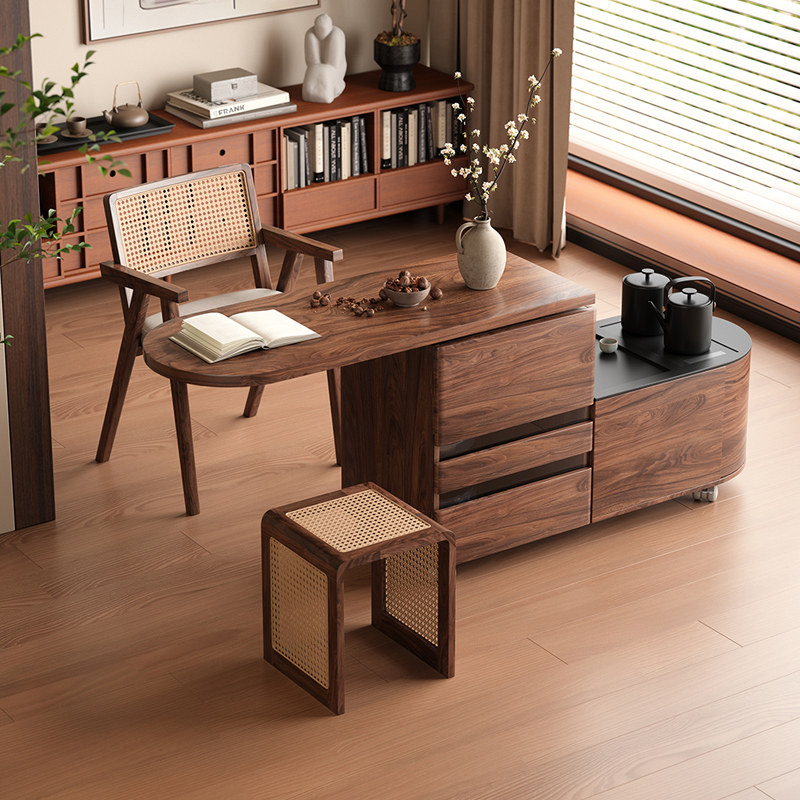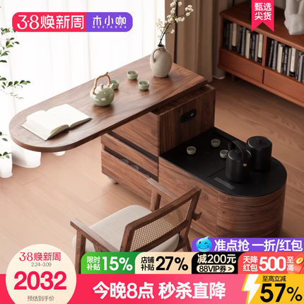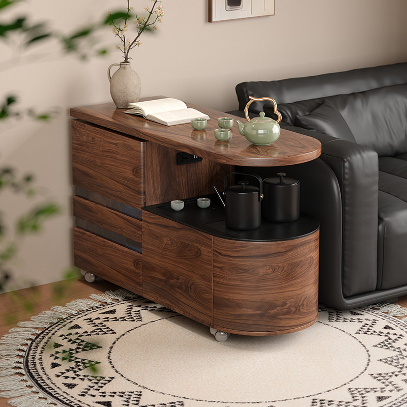 木小咖 初语移动实木茶车家用客厅沙发边几旋转茶水柜岩板茶台