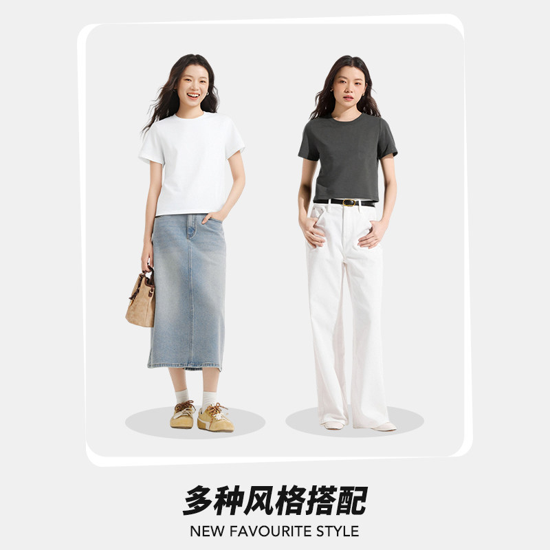春季新款女士修身圆领短袖T