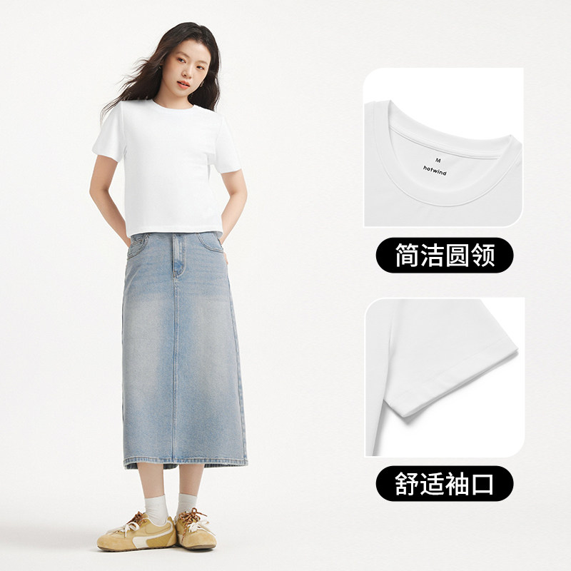 热风女士白色短袖t恤内搭打底衫上衣2026年春季新款修身圆领短袖T