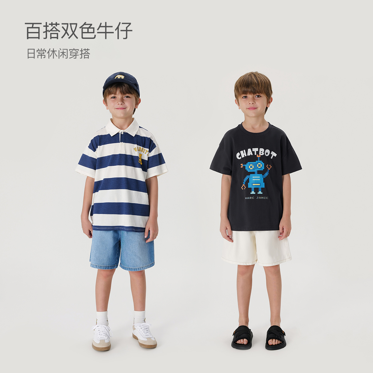 马克珍妮男童纯棉五分牛仔短裤